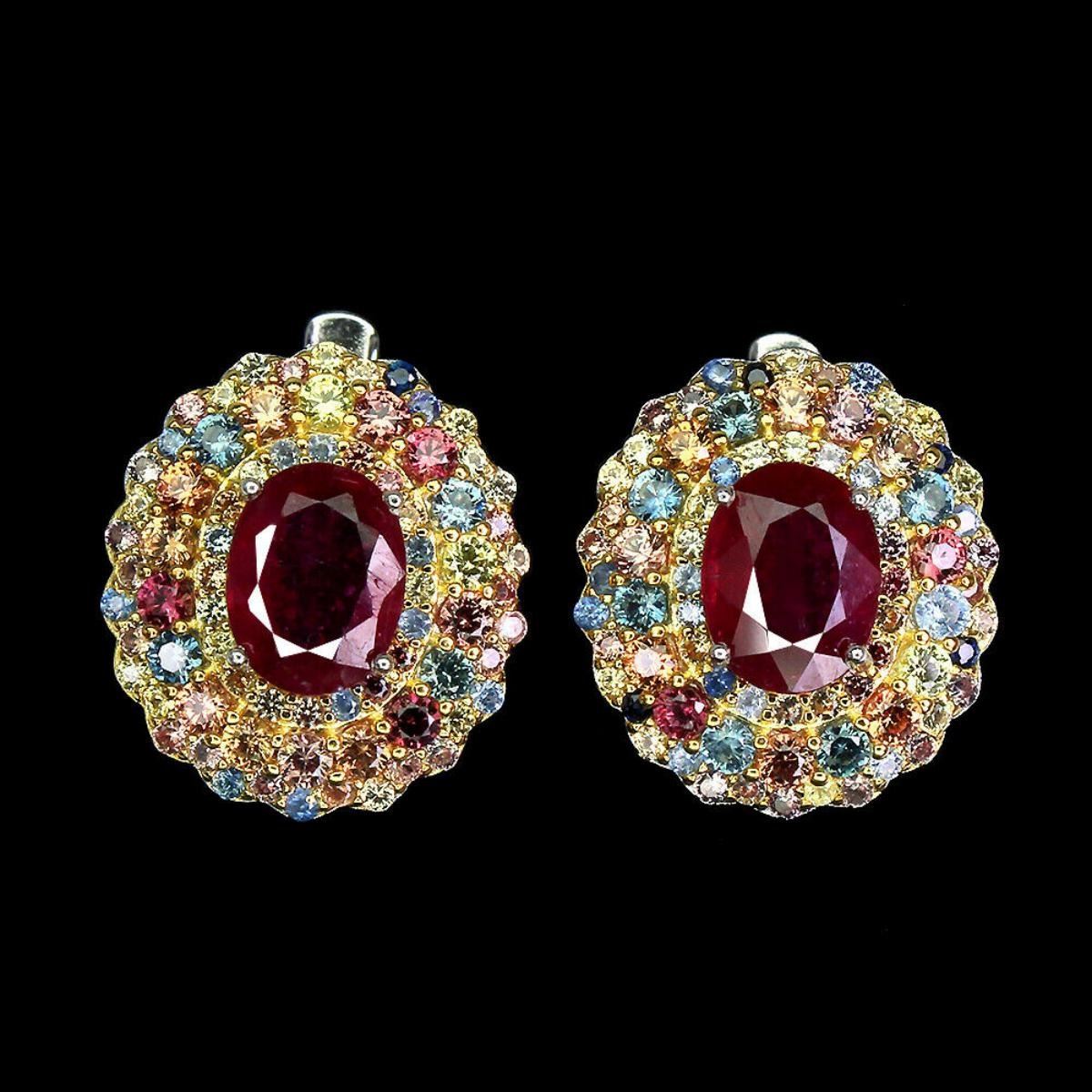 925 STERLING SILVER;PLATE-2-TONE WHITE & YELLOW 14K GOLD;MAIN STONE-RUBY;OTHER GEMS-SAPPHIRE;TOTAL WEIGHT-4.93 GRAM (TOTAL WEIGHT OF SILVER + STONE)DIMENSION-* STONE 1.0 TO 8.0 X 6.0 MM.;* FACE EARRINGS- 16.0 X 15.0 MM.;MAIN STONE SHAPE-OVAL CUT;MAIN STONE COLOR-PIGEON BLOOD RED;TREATMENT-Yes;ORIGIN-MADAGASCAR;HARDNESS-9.0;