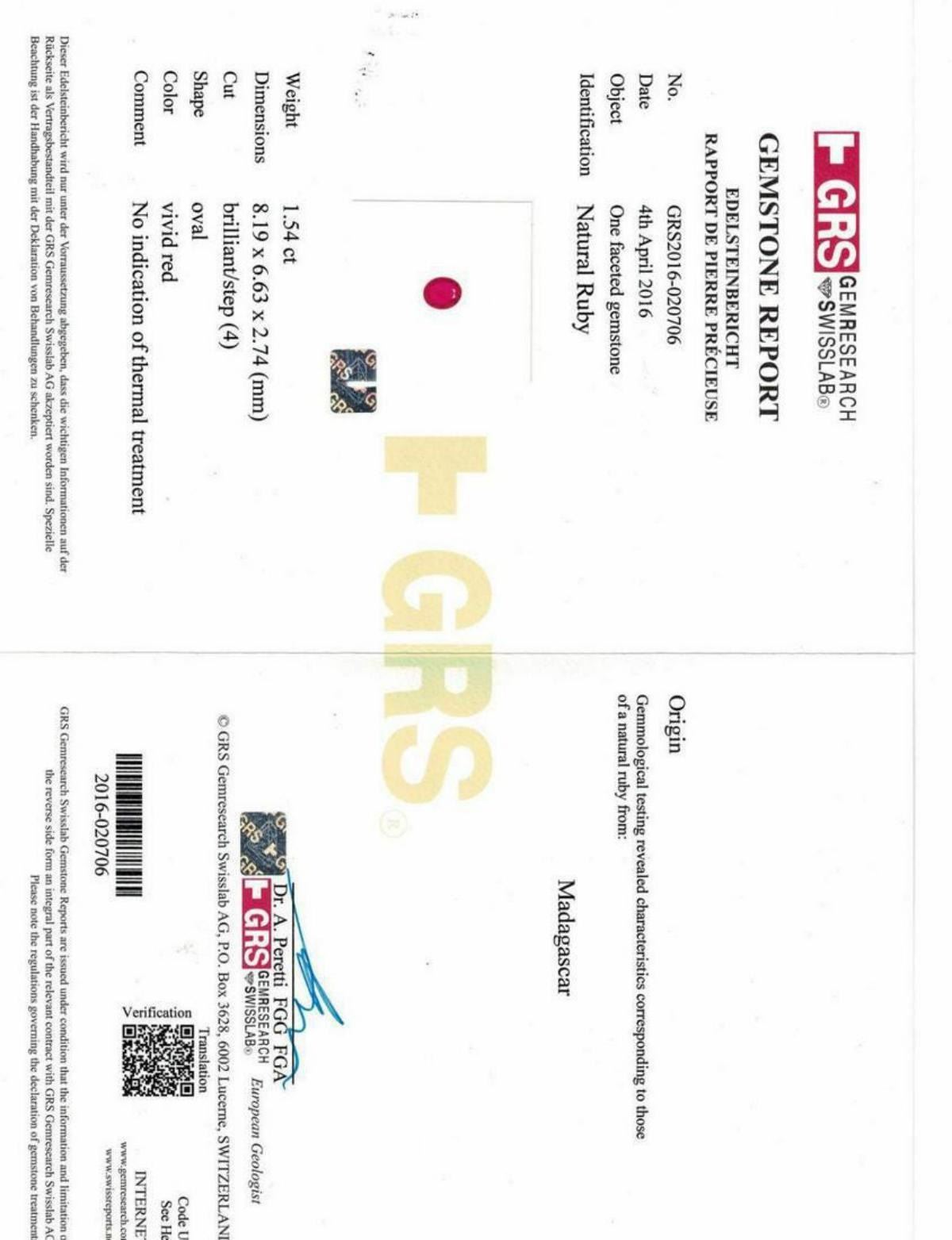 Natural Pigeon Blood Red / Vivid Red Untreated Ruby..1.54 ct........ eye clean...super luster fire....completely untreated....Certified by GRS Swiss Lab.
