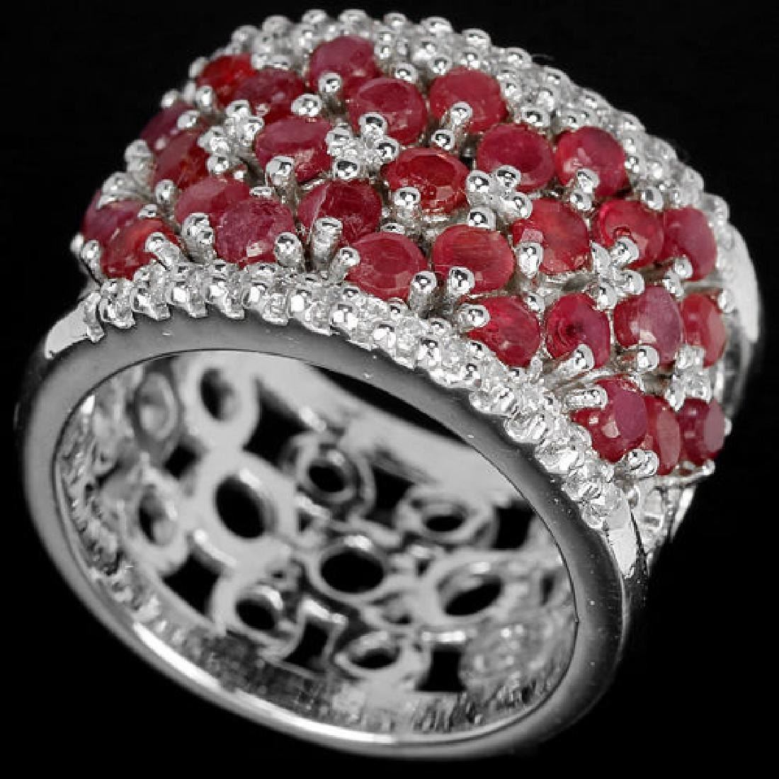 GENUINE BLOOD RED RUBY ROUND WHITE CZ 925 SILVER RING 14K WHITE GOLD COATING; RING SIZE-7.00;ITEM QUANTITY1;STONE SHAPE-ROUND FACET CUT;STONE DIMENSION-2.5 MM.;ITEM WEIGHT-9.94 GRAM;COLOR-BLOOD RED;CLARITY-TRANSLUCENT;LUSTER-DELUXE;TREATMENT-HEATED;ORIGIN OF STONE-AFRICA;HARDNESS-9.0;FACE OF RING -22 X 14 MM.; WHITE CUBIC ZIRCONIA -1.2 MM.