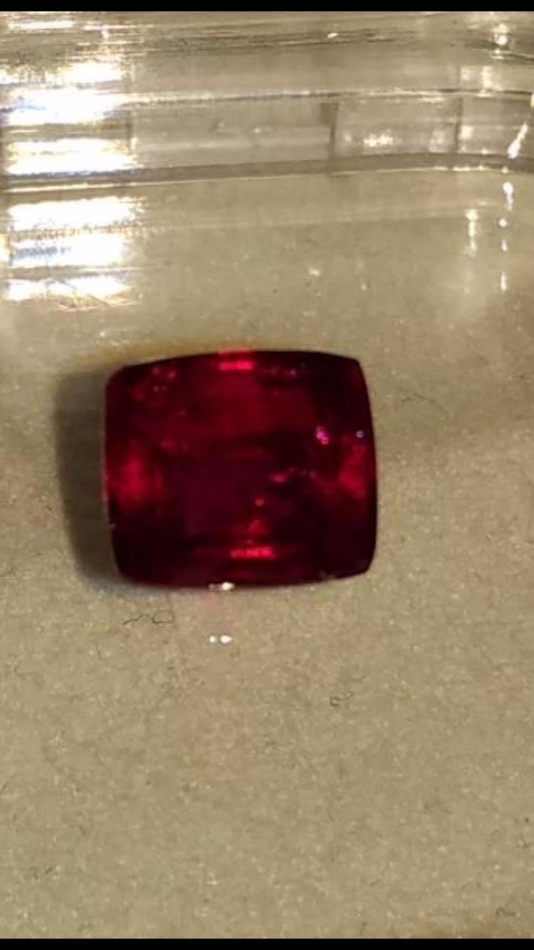 Natural Pigeon Blood Red 1.82 Carats Ruby - GRS certified.....completely untreated.....eye clean......color - Vivid red or Pigeon Blood red. Shape - Cushion Cut