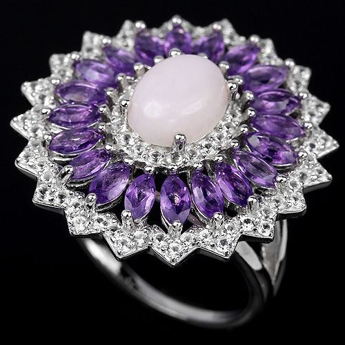 NATURAL PINK OPAL PURPLE AMETHYST CZ 925 SILVER RING 14K WHITE GOLD COATING; RING SIZE6.00 ( can be resized )ITEM QUANTITY-1;STONE SHAPE--OVAL CABOCHON CUT MARQUISE PORTUGUESE CUT;STONE DIMENSION-8 X 6 MM. 4 X 2 MM.;ITEM WEIGHT-4.61 GRAM;COLOR-PINK PURPLE;CLARITY-TRANSLUCENT IF-VVS;TREATMENT-UNHEATED;ORIGIN OF STONE-AFRICA BRAZIL;HARDNESS-5.5 - 7.0;FACE OF RING 23 X 22 MM.; WHITE CUBIC ZIRCONIA 1 MM.