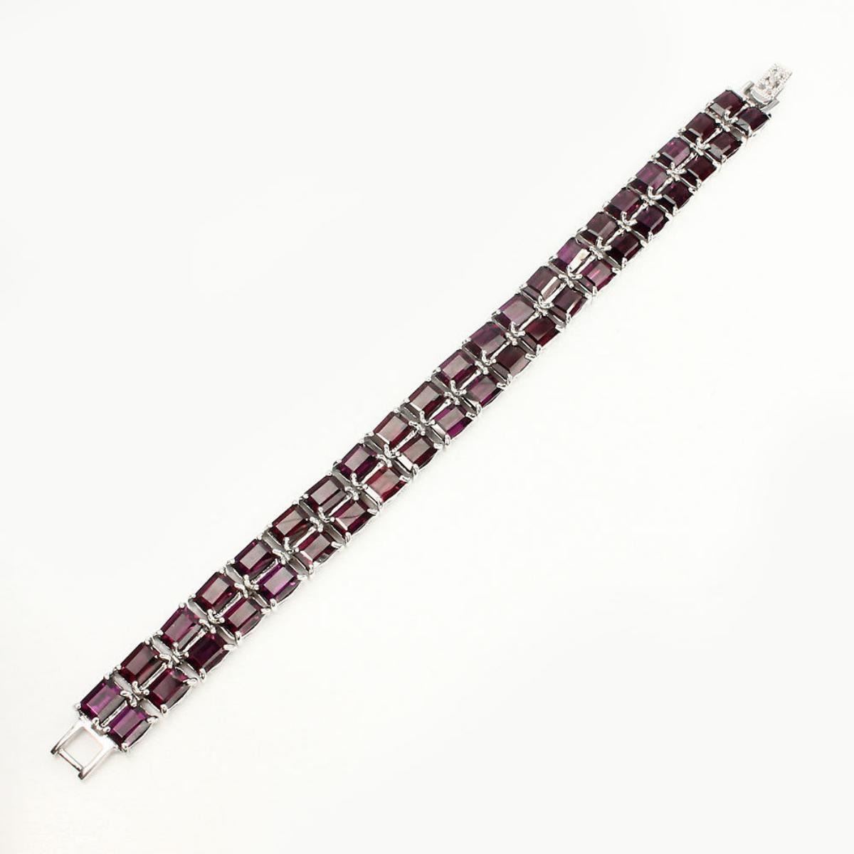 925 STERLING SILVER;PLATE14K WHITE GOLD;LENGTH (INCHES)7.5;MAIN STONERHODOLITE GARNETOTHER GEMSTOTAL WEIGHT167.42 CT (TOTAL WEIGHT OF SILVER + STONE)DIMENSION* STONE 7.0 X 5.0 MM. * FACE BRACELET 180.0 X 12.0 MM.MAIN STONE SHAPEOCTAGON CUTMAIN STONE COLORTOP RICH PINK RASPBERRYCLARITY/GRADEIF TO VVSLUSTERGLORIOUSTREATMENTUNHEATEDORIGINAFRICAHARDNESS7.0 - 7.5