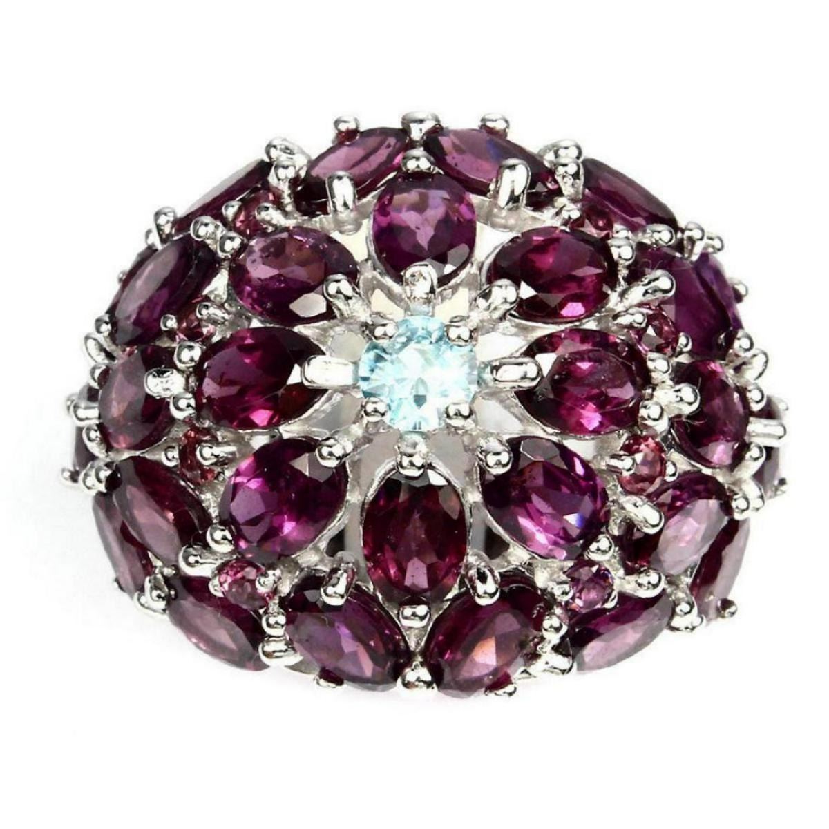 925 STERLING SILVER... PLATE 14K WHITE GOLD; RING SIZE- 8.5; MAIN STONE RHODOLITE GARNET OTHER GEMS ZIRCON TOTAL WEIGHT 68.05 CT (TOTAL WEIGHT OF SILVER + STONE) DIMENSION * STONE 1.5 TO 6.0 X 4.0 MM. * RING 8.5 SIZE * FACE RING 28.0 X 23.0 MM. MAIN STONE SHAPE OVAL CUT MAIN STONE COLOR TOP RICH PINK RASPBERRY CLARITY/GRADE IF TO VVS LUSTER GORGEOUS TREATMENT UNHEATED ORIGIN AFRICA HARDNESS 7.0 - 7.5