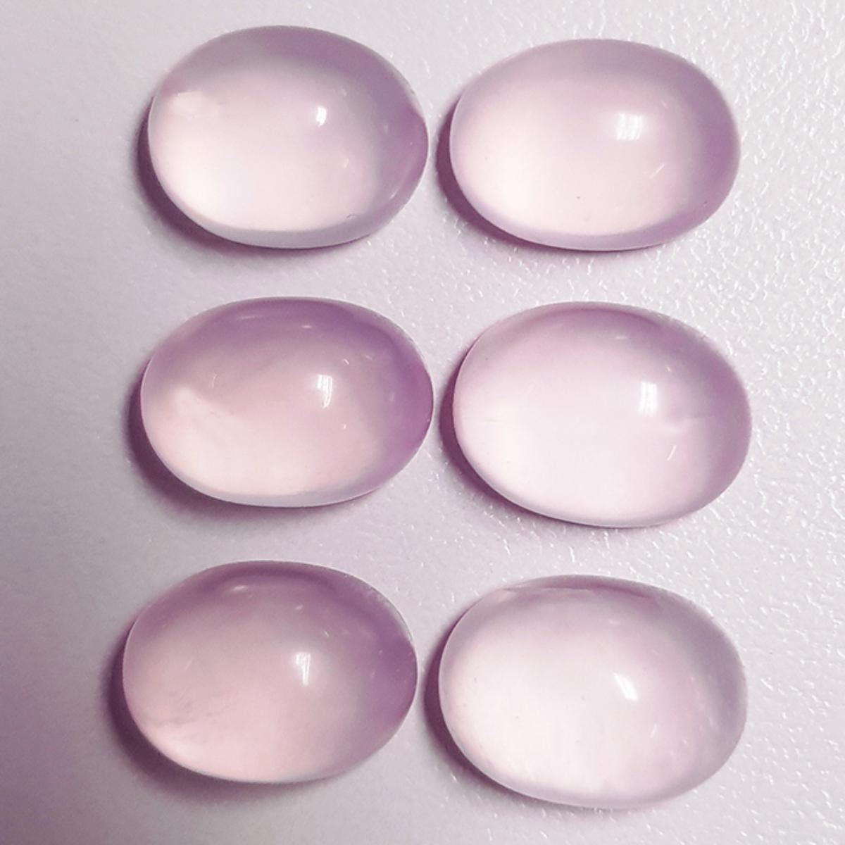 Natural Rose Quartz WEIGHT : 28.08 cts SHAPE : Oval Cabochon SIZE ( L x W x D ) : 12.00 x 9.00 mm QUANTITY : 6 pieces (Perfectly Matched Set) COLOR : Sweet Pink CLARITY : Flawless-VVS (Highly Transparent) ORIGIN : Brazil HARDNESS : 7 LUSTER : Excellent Polish & Beautiful Luster TREATMENT : 100% Natural Unheated