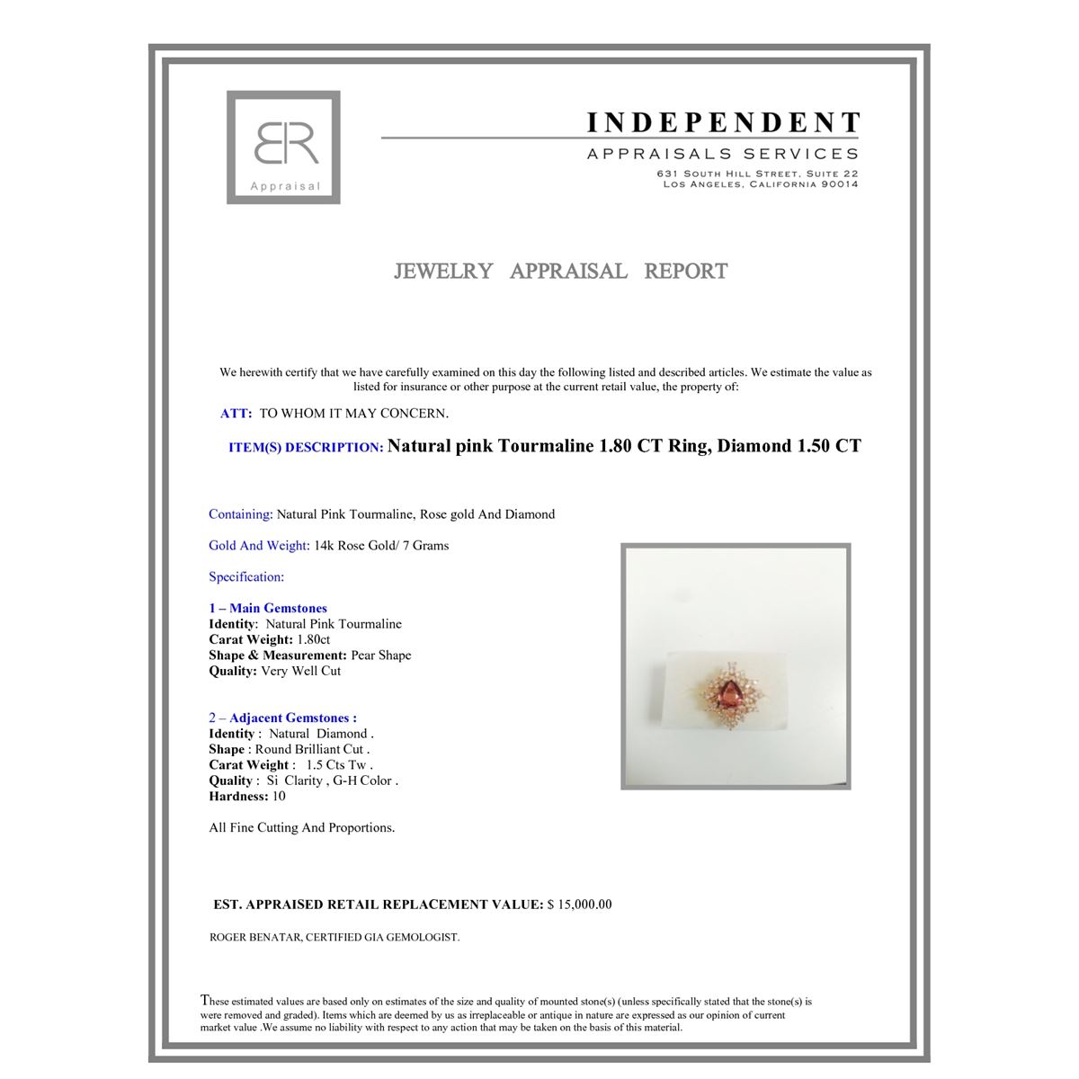 Natural Pink Tourmaline 1.80 CT Ring, Diamond 1.50 CT 14K Rose Gold :7 Grams Diamond:1.5 CT