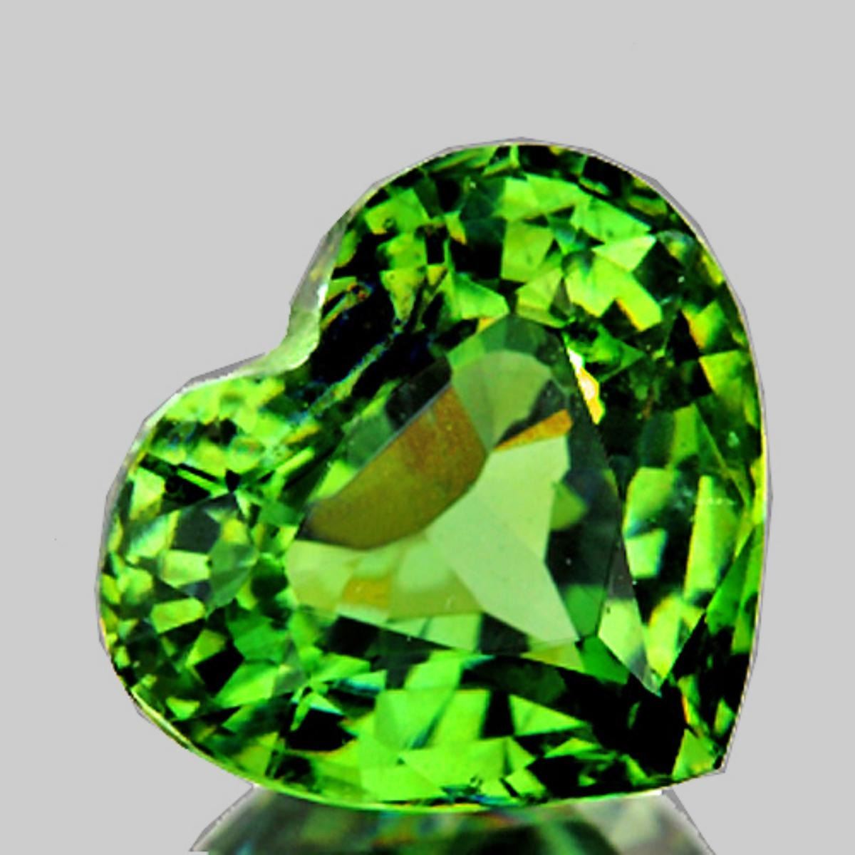 Natural Demantoid; WEIGHT : 0.82 cts; SHAPE : Heart; SIZE ( L x W x D ) : 5.20 x 5.70 x 3.39 mm; QUANTITY : 1 pieces ; COLOR : Premium Green AAA Color; CLARITY : Flawless-VVS AAA Grade; ORIGIN : Ural Mountains , Russia; HARDNESS : 7; LUSTER : AAA Fire!!! TREATMENT : 100% Natural Unheated;