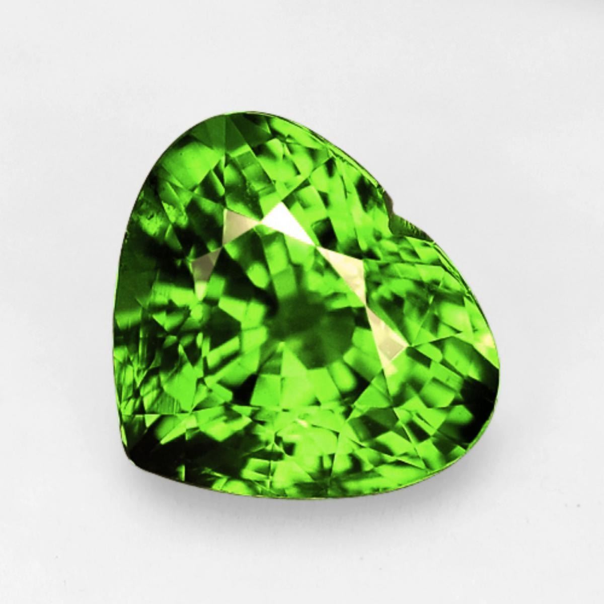 Natural Demantoid..........Certified; WEIGHT : 1.10 cts; SHAPE : Heart; SIZE ( L x W x D ) : 6.38 x 5.96 x 3.83 mm; QUANTITY : 1 pieces ; COLOR : Premium Green AAA Color; CLARITY : VVS AAA Grade; ORIGIN : Ural Mountains , Russia; HARDNESS : 7; LUSTER : AAA Fire!!! TREATMENT : 100% Natural Unheated;