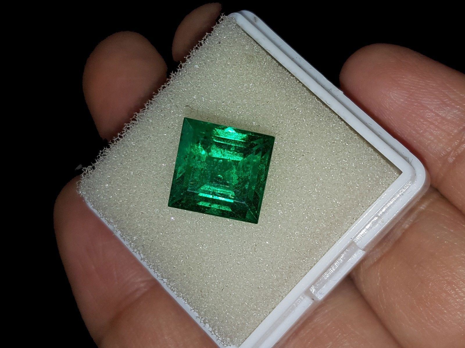 Natural Princess Cut Forest Green Emerald 7.90 Carats; ;Length:9.40x9.16x7.08 MM;Treatment:Enhanced; Origin Zambia; 100% Natural Earth mined...