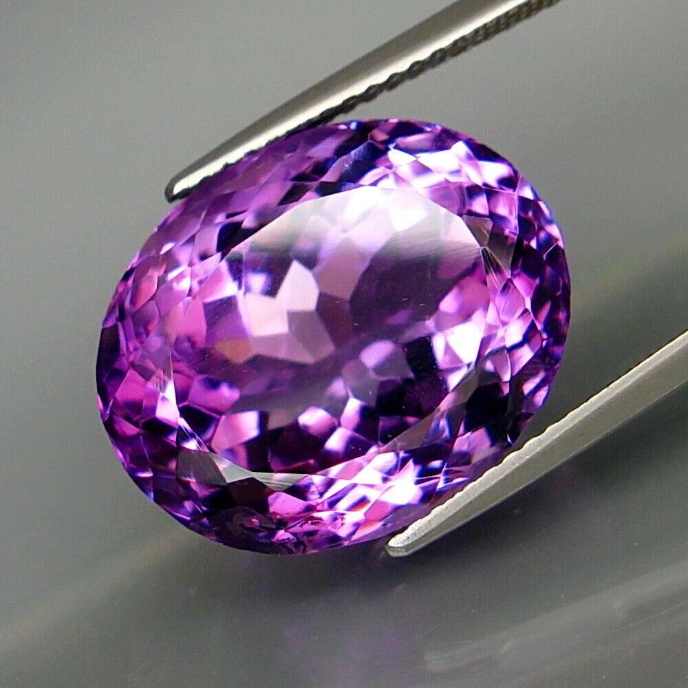 Amethyst SHAPE Oval WEIGHT 16.28 Ct. SIZE 16.9 X 13.8 X 11.4 mm QUANTITY 1 Piece; COLOR Purple CLARITY VVS LUSTER Superior ORIGIN Brazil;TREATMENT None HARDNESS 7