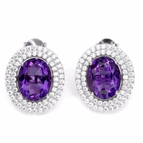 AMETHYST (NATURAL) & CUBIC ZIRCONIA 14K WHITE GOLD PLATED 925 SILVER EARRINGSUNIT OF ITEM (S):2 PIECESWEIGHT (CT.):20.36 CT. (total weight of silver + stone)DIMENSION:* STONE 10.0 X 8.0 MM. * CZ 1.0 MM. * FACE EARRINGS 16.0 X 14.0 MM.SHAPE/CUT:OVAL FACET & ROUND DIAMOND CUTCOLOR:TOP RICH PURPLE & AAA WHITECLARITY/GRADE:IF TO VVSLUSTER:GORGEOUSTREATMENT:UNHEATEDORIGIN:BRAZILHARDNESS:7.0