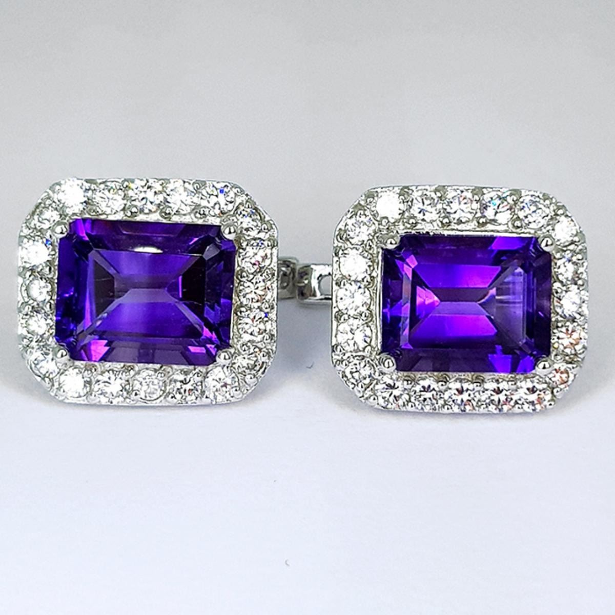 ewelry Set (Ring + Earring)Metal Type925 Sterling SilverPlate14K White GoldTotal Jewelry Weight11.91 grams or 59.55cts(Ring + Earring) Ring Detail Ring Weight5.00 grams or 25.00ctsRing Size7.00 US (resizeable)Ring DimensionFace Ring 15.00 x 14.00 mm.Main StoneNatural Purple AmethystRectangle 11x8mm 1 piece Flawless-VVS1Other StonesCubic Zirconia Round 1.00mm Flawless-VVS1 Earring Details Earring Weight6.91grams or 34.55ctsEarring SizeFace Earring 15.00mm x 13.00 mm.Main StoneNatural Purple AmethystRectangle 11x8mm 2 pieces Flawless-VVS1Other StonesCubic Zirconia Round 1.00mm Flawless-VVS1