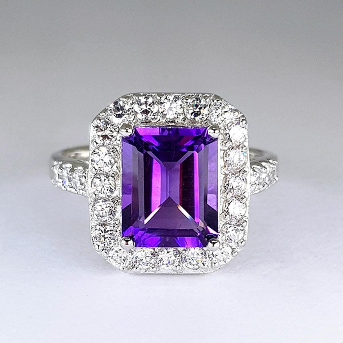 ewelry Set (Ring + Earring)Metal Type925 Sterling SilverPlate14K White GoldTotal Jewelry Weight11.91 grams or 59.55cts(Ring + Earring) Ring Detail Ring Weight5.00 grams or 25.00ctsRing Size7.00 US (resizeable)Ring DimensionFace Ring 15.00 x 14.00 mm.Main StoneNatural Purple AmethystRectangle 11x8mm 1 piece Flawless-VVS1Other StonesCubic Zirconia Round 1.00mm Flawless-VVS1 Earring Details Earring Weight6.91grams or 34.55ctsEarring SizeFace Earring 15.00mm x 13.00 mm.Main StoneNatural Purple AmethystRectangle 11x8mm 2 pieces Flawless-VVS1Other StonesCubic Zirconia Round 1.00mm Flawless-VVS1