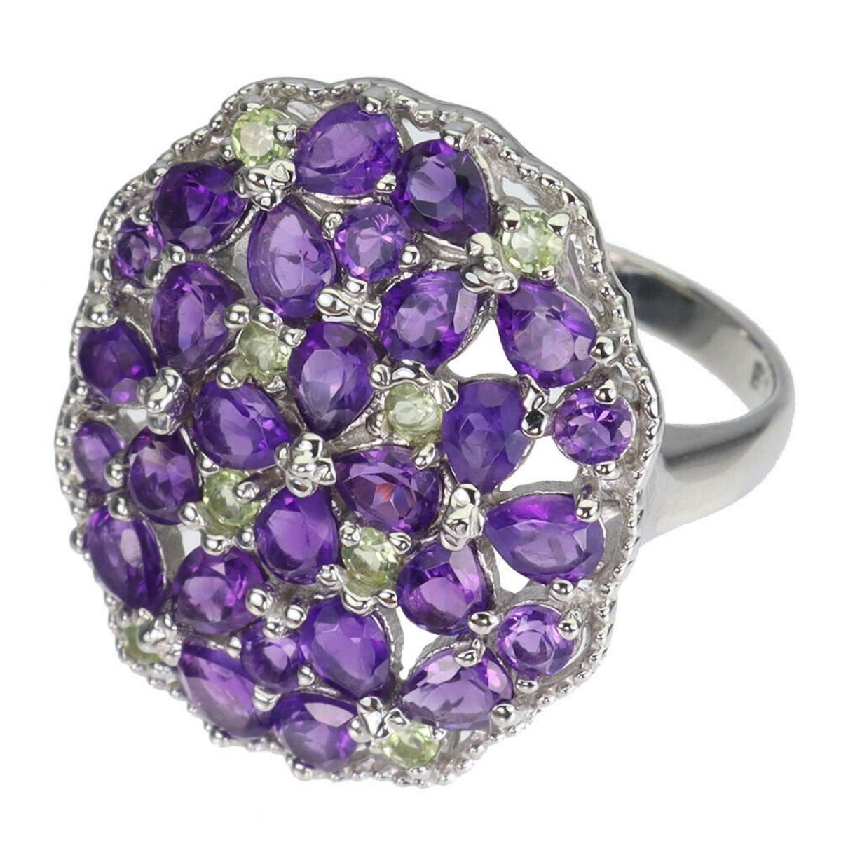 925 STERLING SILVER;PLATE-14K WHITE GOLD;RING SIZE/resizable-9;MAIN STONE-AMETHYST;OTHER GEMS-PERIDOT;TOTAL WEIGHT-6.4 GRAM (TOTAL WEIGHT OF SILVER + STONE)DIMENSION-* STONE 2.5 TO 4.0 X 3.0 MM.;* FACE RING- 25.0 X 22.0 MM.;MAIN STONE SHAPE-PEAR CUT;MAIN STONE COLOR- PURPLE;CLARITY/GRADE-IF TO VVS;TREATMENT-UNHEATED;ORIGIN-URUGUAY;HARDNESS-7;