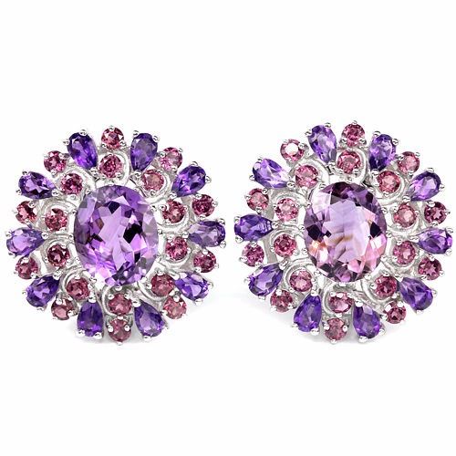 PURPLE AMETHYST RHODOLITE GARNET 925 SILVER EARRING 14K WHITE GOLD COATING; STONE SHAPE -MIXED SHAPE; STONE DIMENSION -12 X 10 MM. , 5 X 3 MM. , 2.5 MM.; ITEM WEIGHT -13.4 GRAM; COLOR -PURPLE PURPLE PINK; CLARITY -IF TO VVS; LUSTER- DAZZLING; TREATMENT -NATURAL UNHEATED; ORIGIN OF STONE- BRAZIL AFRICA; HARDNESS -7 - 7.5; FACE OF EARRING 27 X 26 MM.