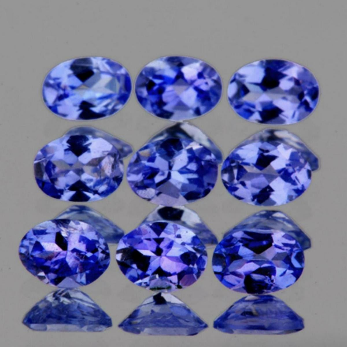 Natural Tanzanite; SHAPE : Oval; SIZE ( L x W x D ) : 4.00 x 3.00 mm; QUANTITY : 9 pieces ( Perfectly Matched Set) COLOR : Purple Blue; CLARITY : Flawless-VVS1; ORIGIN : Tanzania;; HARDNESS : 6; LUSTER : Excellent!!!