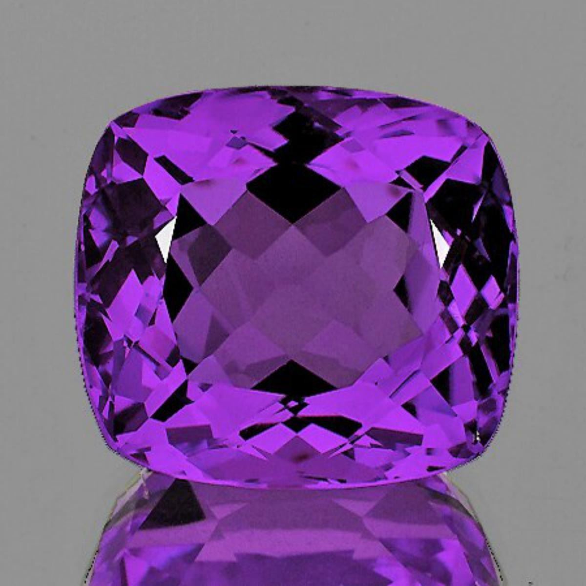 Natural Amethyst WEIGHT : 17.24 cts; SHAPE : Cushion; SIZE ( L x W x D ) : 16.47 x 15.54 x 10.98 mm; QUANTITY : 1 piece; COLOR : Intense Purple AAA Color; CLARITY : Flawless-VVS AAA Grade; ORIGIN : Brazil; HARDNESS : 7; LUSTER : AAA Fire!!! TREATMENT : 100% Natural Unheated;