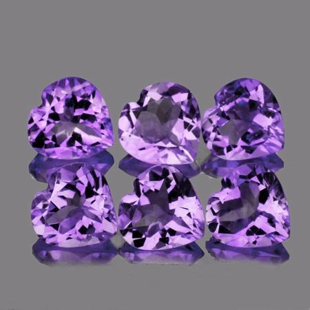 Natural Purple Heart Amethyst 10 mm - VVS......Origin - Brazil; Total Pieces - 6; Carat Weight 15-16 carats Approx;Hardness:7; Amethyst is a powerful and protective stone. It guards against psychic attack, transmuting the energy into love and protecting the wearer from all types of harm, including geopathic or electromagnetic stress and ill wishes from others. Amethyst is a natural tranquiliser, it relieves stress and strain, soothes irritability, balances mood swings, dispels anger, rage, fear and anxiety. Alleviates sadness and grief, and dissolves negativity. Amethyst activates spiritual awareness, opens intuition and enhances psychic abilities. It has strong healing and cleansing powers. Amethyst encourages sobriety, having a sobering effect on overindulgence of alcohol, drugs or other addictions. It calms and stimulates the mind, helping you become more focused, enhancing memory and improving motivation. Amethyst assists in remembering and understanding dreams. It relieves insomnia. Encourages selflessness and spiritual wisdom.Amethyst boosts hormone production, tunes the endocrine system and metabolism. It strengthens the immune system, reduces pain and strengthens the body to fight against cancer. It destroys malignant tumours and aids in tissue regeneration. Cleanses the blood. Relieves physical, emotional and psychological pain or stress. Amethyst eases headaches and releases tension. It reduces bruising, swellings, injuries, and treats hearing disorders. Amethyst heals diseases of the lungs and respiratory tract, skin conditions, cellular disorders and diseases of the digestive tract.