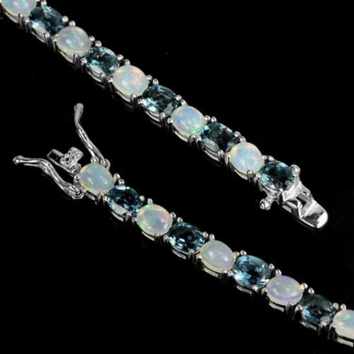 GENUINE AAA RAINBOW OPAL & TOPAZ 925 SILVER BRACELET 14K WHITE GOLD COATING; LENGTH OF ITEM (Inch.)7.50;ITEM QUANTITY1STONE SHAPEOVAL CABOCHON CUT & OVAL PORTUGUESE CUTSTONE DIMENSION6 X 4 MM.ITEM WEIGHT13.5 GRAMCOLORWHITE & LONDON BLUECLARITYTRANSLUCENT & IF-VVSLUSTERALLURINGTREATMENTUNHEATED & IRRADIATIONORIGIN OF STONEAFRICAHARDNESS5.5 - 8.0