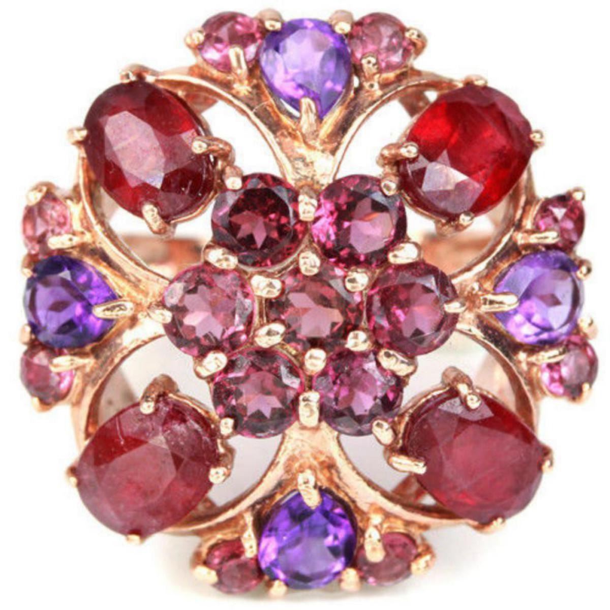 Natural RED RUBY AMETHYST RHODOLITE GARNET Ring