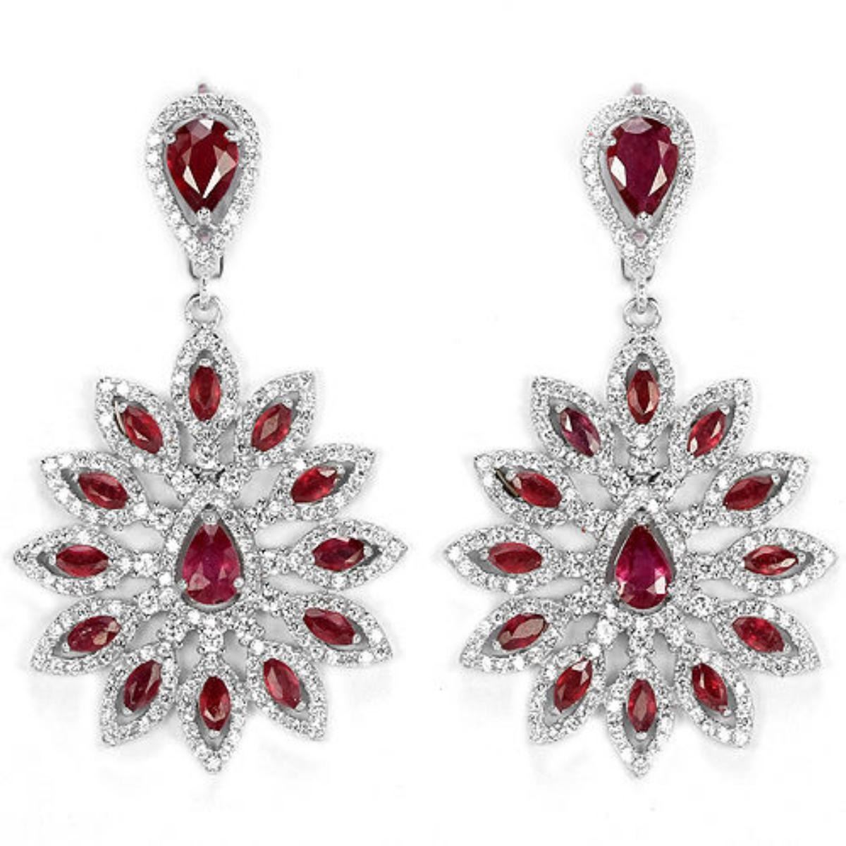 GENUINE AAA RED RUBY WHITE CZ 925 SILVER EARRING 14K WHITE GOLD COATING; STONE SHAPE PEAR MARQUISE STONE DIMENSION 7 X 5 MM. , 6 X 4 MM. , 4 X 2 MM. ITEM WEIGHT 13.07 GRAM COLOR PINK RED CLARITY TRANSLUCENT LUSTER ELEGANT TREATMENT HEATED ORIGIN OF STONE AFRICA HARDNESS 9 ; FACE OF EARRING 46 X 27 MM. WHITE CUBIC ZIRCONIA 1.5 MM. , 1 MM.