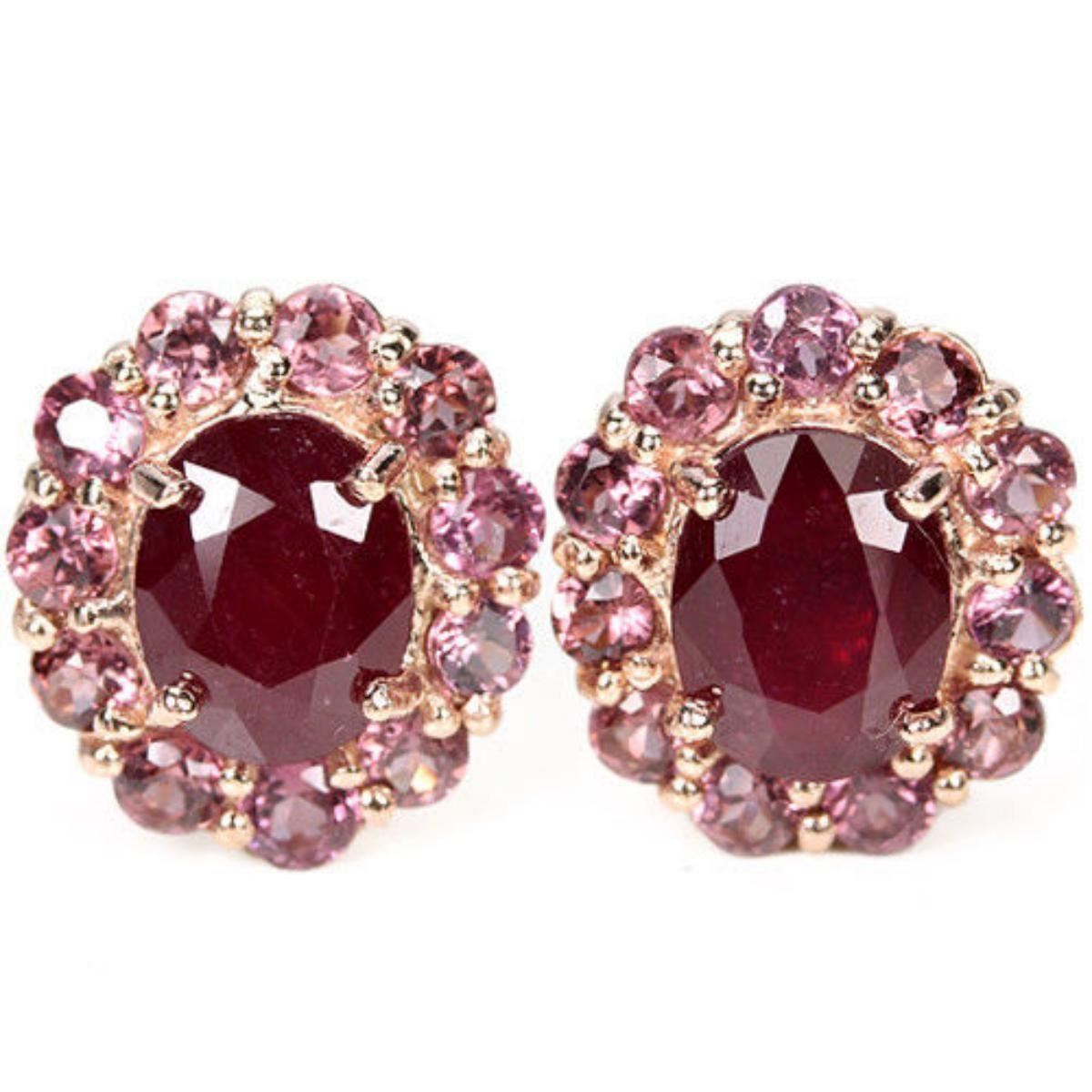 GENUINE AAA BLOOD RED RUBY RHODOLITE GARNET 925 SILVER EARRING PINK GOLD CAOTING; STONE SHAPEOVAL & ROUNDSTONE DIMENSION8 X 6 MM. , 2.5 MM.ITEM WEIGHT4.7 GRAMCOLORBLOOD RED & PURPLISH PINKCLARITYTRANSLUCENT & IF-VVSLUSTERELEGANTTREATMENTHEATED & NATURAL UNHEATEDORIGIN OF STONEAFRICAHARDNESS7.5 - 9.0;FACE OF EARRING 13 X 12 MM.