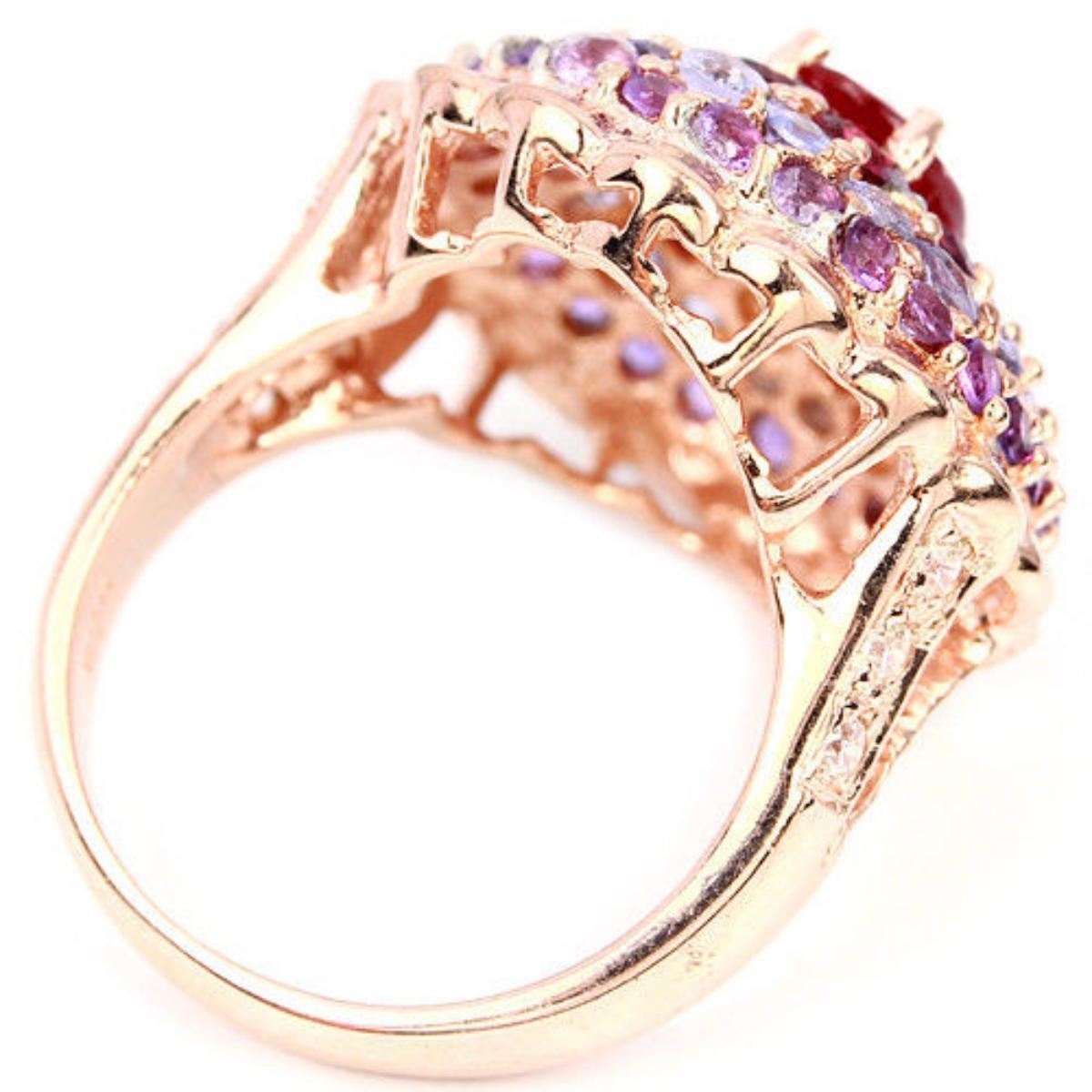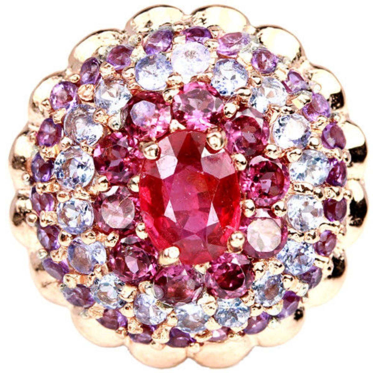 Natural RUBY RHODOLITE AMETHYST TANZANITE & CZ 925SILVER RING 14K PINK GOLD COATING; RING SIZE...5.25 ( resizeable )ITEM QUANTITY1STONE SHAPEOVAL & ROUNDSTONE DIMENSION7.1 X 5.3 X 2.6 MM. , 2.7 MM. , 2.2 MM. & 1.7 MM.ITEM WEIGHT6.9 GRAMCOLORMULTI COLORCLARITYTRANSPARENT & IF-VVSLUSTERDAZZLINGTREATMENTUNHEATED & HEATEDORIGIN OF STONEAFRICA, TANZANIA & BRAZILHARDNESS7 - 9;FACE OF RING 20 X 19 MM. WHITE CUBIC ZIRCONIA 1.5 MM.