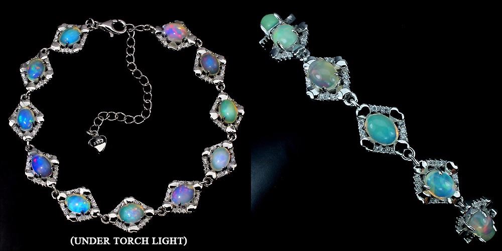 FIRE OPAL (NATURAL) & CUBIC ZIRCONIA 14K WHITE GOLD PLATED 925 SILVER BRACELETUNIT OF ITEM (S):1 PIECEWEIGHT (CT.):72.66 CT. (total weight of silver + stone)DIMENSION:* STONE 7.0 X 5.0 MM. * CZ 1.0 MM. * LENGTH 9.5 INCHES. * FACE BRACELET 170.0 X 10.0 MM.SHAPE/CUT:OVAL CABOCHON & ROUND DIAMOND CUTCOLOR:BRIGHT YELLOW WITH HOT RAINBOW LUSTER & AAA WHITECLARITY/GRADE:TRANSPARENT & IF TO VVSLUSTER:AMAZINGORIGIN:ETHIOPIAHARDNESS:5.5 - 6.5