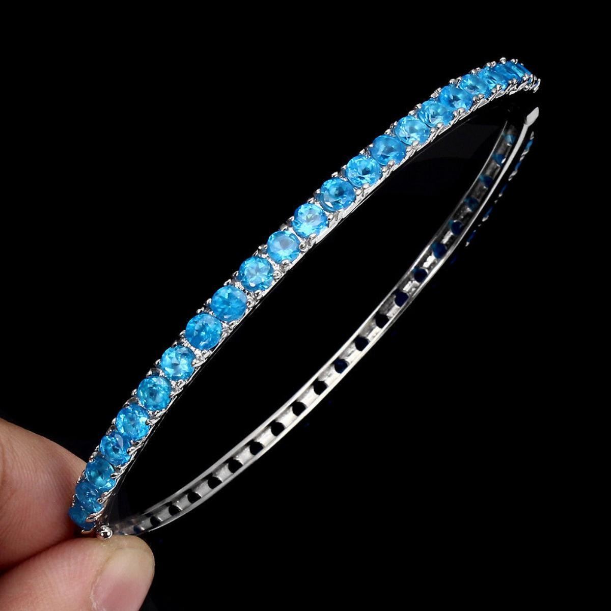 925 STERLING SILVER;PLATE...14K WHITE GOLD;MAIN STONE..APATITE;TOTAL WEIGHT67.24 CT (TOTAL WEIGHT OF SILVER + STONE)DIMENSION* STONE 3.0 MM. * DIAMETER 2.3 X 2.0 INCHES. * FACE BANGLE 62.0 X 4.0 MM.MAIN STONE SHAPEROUND CUTMAIN STONE COLORAAA NEON BLUECLARITY/GRADEIF TO VVSLUSTERMESMERIZINGTREATMENTHEATEDORIGIN- Brazil;HARDNESS5.0