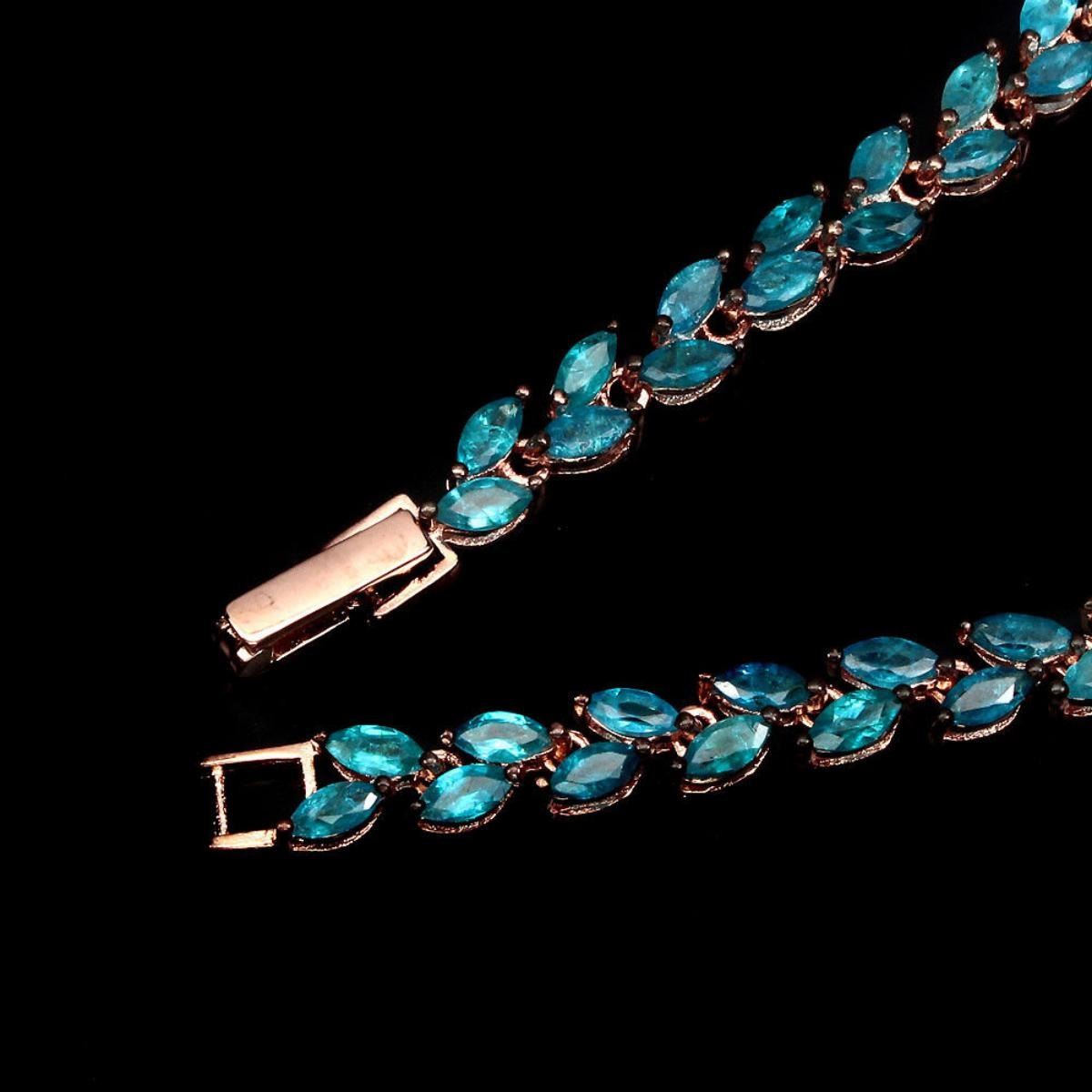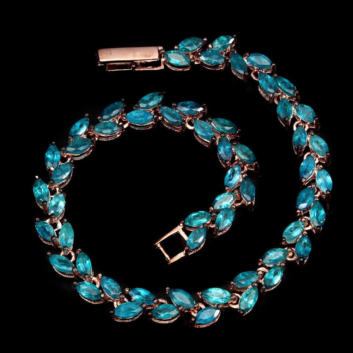 925 STERLING SILVER;PLATE14K ROSE GOLD;LENGTH (INCHES)7.5;MAIN STONEAPATITE;TOTAL WEIGHT48.85 CT (TOTAL WEIGHT OF SILVER + STONE)DIMENSION* STONE 4.0 X 2.0 MM. * FACE BRACELET 180.0 X 5.0 MM.;MAIN STONE SHAPEMARQUISE CUT;MAIN STONE COLORTOP NEON BLUE;CLARITY/GRADEIF TO VVS;LUSTERFASCINATING;ORIGIN- Brazil;HARDNESS5.0