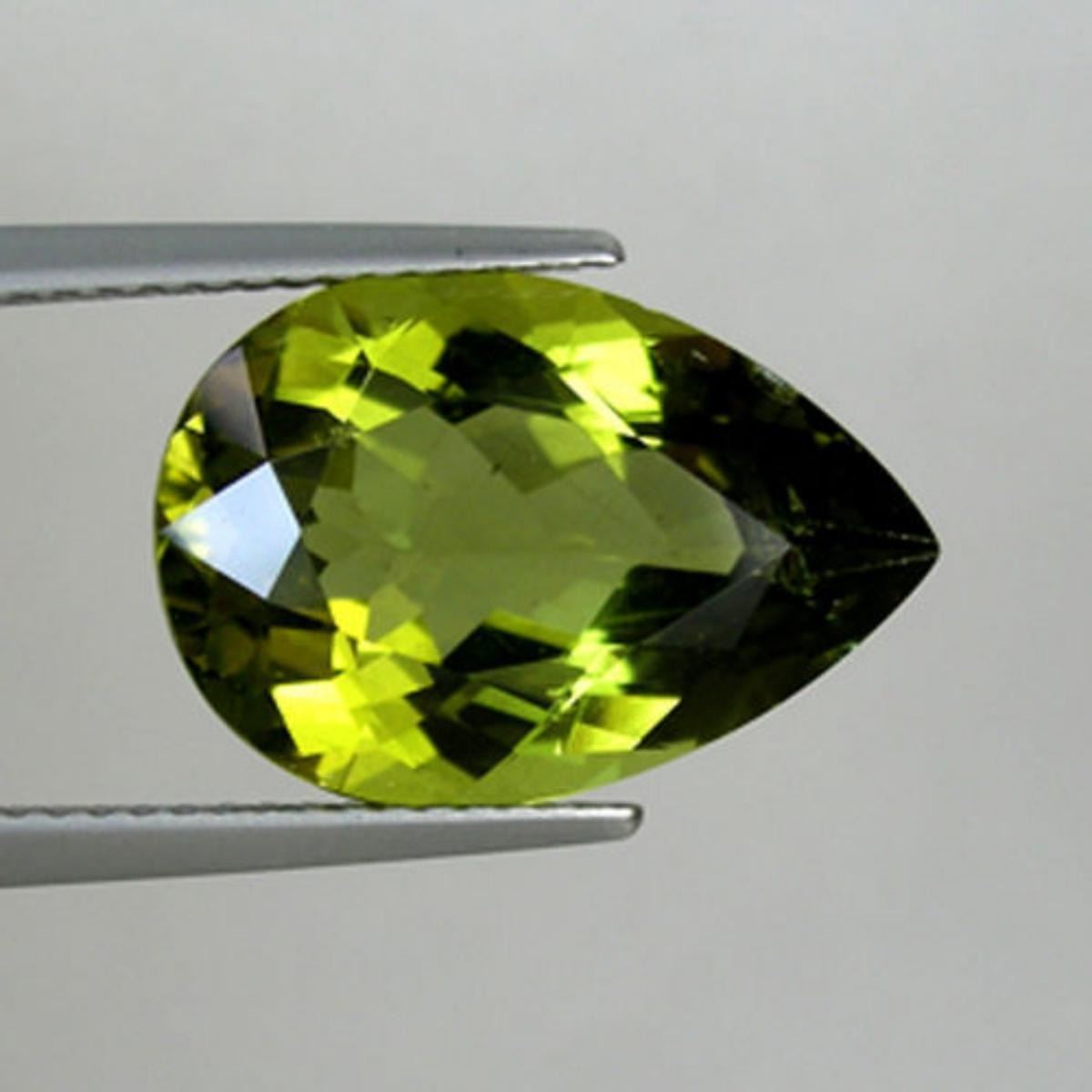 Natural Apatite...........Dimension:-16.20 x 11.00 Depth 6.90 MM;Color :-Yellow Green;Weight:-7.70Carats.;Clarity:-VS1;Shape/Cut:-Pear;Origin:-Africa; Treatment:-Non;Hardness :-7-7.5