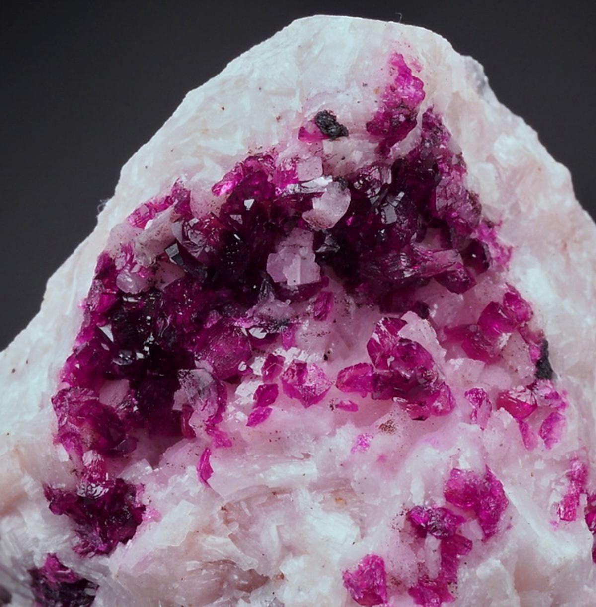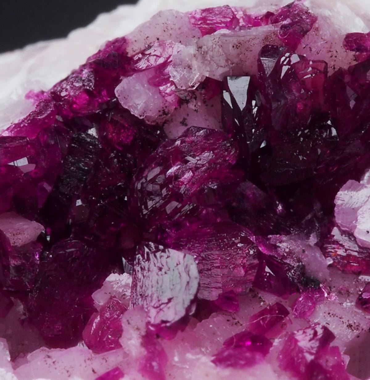 ROSELITEAghbar mine, Bou Azer, Ouarzazate Province, MoroccoSpecimen of lustrous roselite crystals in intensive violet/pourple colour on white dolomite matrix !!!Great colours !!!RARE !!____________________size: 3.8 x 3.5 x 2.2 cmweight: 33 g