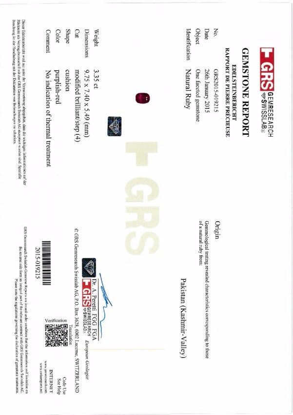 Natural Ruby 3.35 carats - GRS Certified......Extremely rare to find ruby from Kashmir Valley.....100% natural and completely free from any treatment