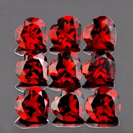 Natural Mozambique Garnet..... WEIGHT : 8.88 cts SHAPE : Heart SIZE ( L x W x D ) : 6.00 mm QUANTITY : 9 pieces (Perfectly Matched Set) COLOR : Red CLARITY : IF-VVS1 ORIGIN : Mozambique Africa HARDNESS : 7 LUSTER : Excellent!!! TREATMENT : 100% Natural Unheated