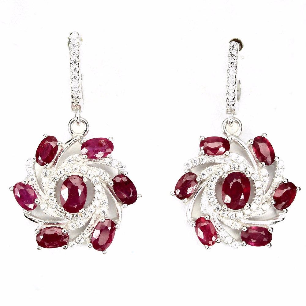 925 STERLING SILVER; PLATE -14K WHITE GOLD; MAIN STONE -RUBY; OTHER GEMS -CUBIC ZIRCONIA; TOTAL WEIGHT -34.25 CT (TOTAL WEIGHT OF SILVER + STONE) DIMENSION * STONE 5.0 X 3.0 TO 6.0 X 4.0 MM. * CZ 1.0 MM. * FACE EARRINGS 35.0 X 17.0 MM. MAIN STONE SHAPE- OVAL CUT; MAIN STONE COLOR -TOP RICH RED PINK; CLARITY/GRADE -TRANSPARENT; TREATMENT - Yes; ORIGIN -MADAGASCAR; HARDNESS -9.0
