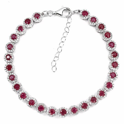 RUBY (NATURAL) & CUBIC ZIRCONIA 14K WHITE GOLD PLATED 925 SILVER BRACELETUNIT OF ITEM (S):1 PIECEWEIGHT (CT.):52.96 CT. (total weight of silver + stone)DIMENSION:* STONE 3.0 MM. * CZ 1.0 MM. * LENGTH 8.5 INCHES. * FACE BRACELET 160.0 X 6.0 MM.SHAPE/CUT:ROUND FACET & ROUND DIAMOND CUTCOLOR:TOP RICH RED PINK & AAA WHITECLARITY/GRADE:TRANSPARENT & IF TO VVSLUSTER:GORGEOUSORIGIN:MOZAMBIQUEHARDNESS:9.0