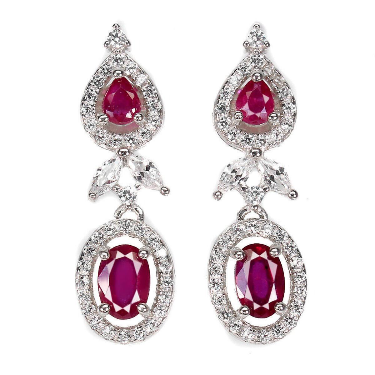 925 STERLING SILVER;PLATE-14K WHITE GOLD;MAIN STONE-RUBY;TOTAL WEIGHT-4.15 GRAM (TOTAL WEIGHT OF SILVER + STONE)DIMENSION-* STONE 4.0 X 3.0 TO 6.0 X 4.0 MM. * CZ 1.0 TO 4.0 X 2.0 MM. * FACE EARRINGS- 26.0 X 8.0 MM.;MAIN STONE SHAPE-OVAL CUT;MAIN STONE COLOR-TOP RICH RED;TREATMENT- Yes;ORIGIN-MADAGASCAR;HARDNESS-9;