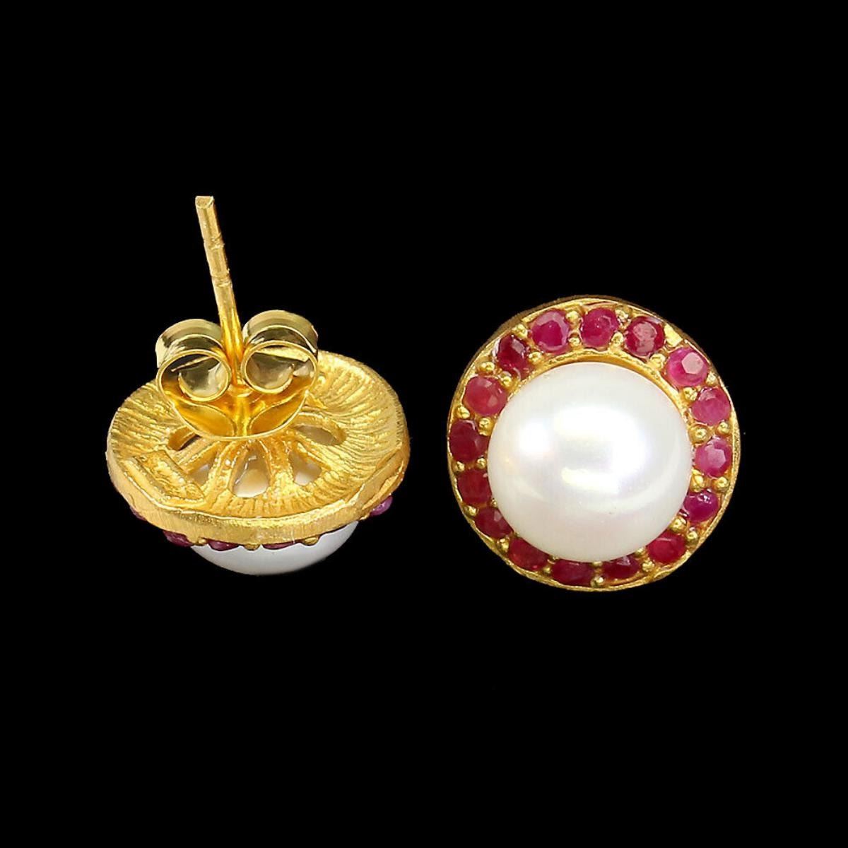 Natural Red Ruby & Pearl Earrings