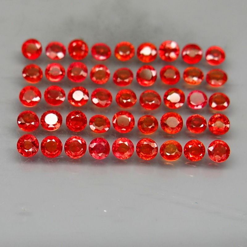 Natural SapphireSHAPE :Round;WEIGHT :5.03 Ct.;SIZE :2.7 Mm.;QUANTITY :45 Pieces;COLOR :Imperial Red;CLARITY :Clean Vs;LUSTER :Superior;ORIGIN :Africa;TREATMENT : Heated;HARDNESS :9;