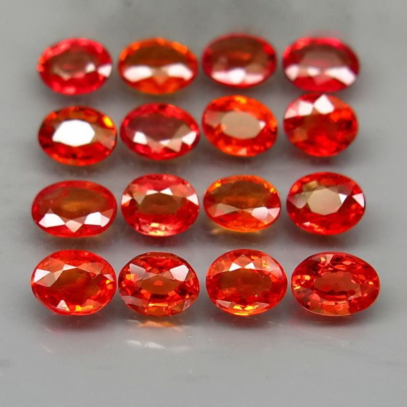 Natural SapphireSHAPE :Oval;WEIGHT :5.95 Ct.;SIZE :5 X 4 Mm.;QUANTITY :16 Pieces;COLOR :Imperial Red;CLARITY :Vs Si;LUSTER :Superior;ORIGIN :Africa;TREATMENT :Heated;HARDNESS :9