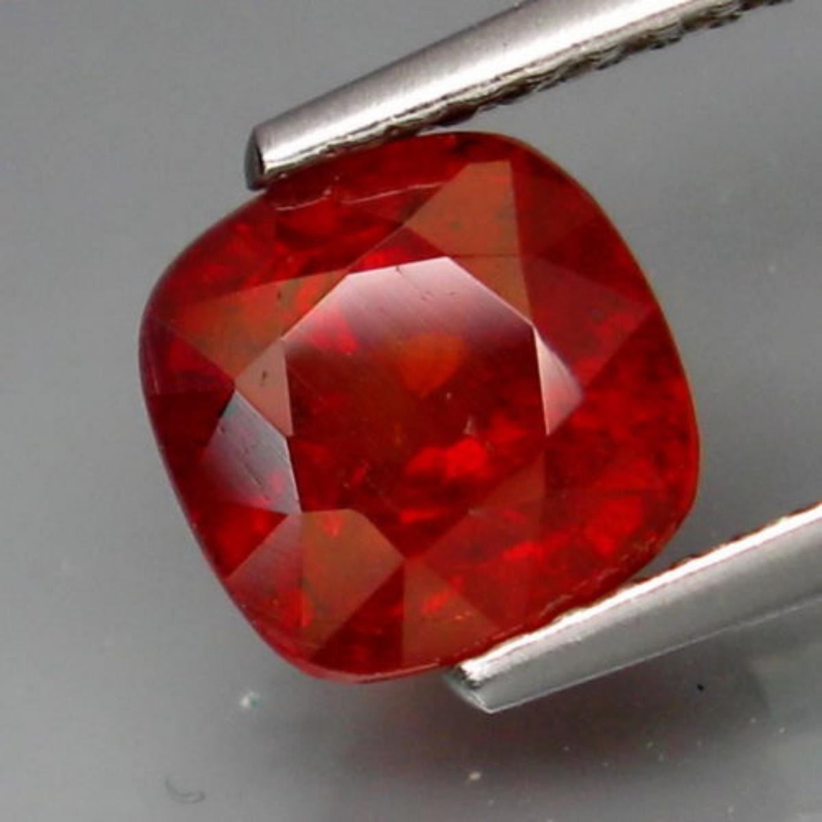 SHAPE :Classic Cushion;WEIGHT :2.28 Ct.;SIZE :7 X 6.9 X 4.8 Mm.;QUANTITY :1 Piece;COLOR :Red;CLARITY :I1;LUSTER :Superior;ORIGIN :Africa;TREATMENT :None;HARDNESS :7-7.5