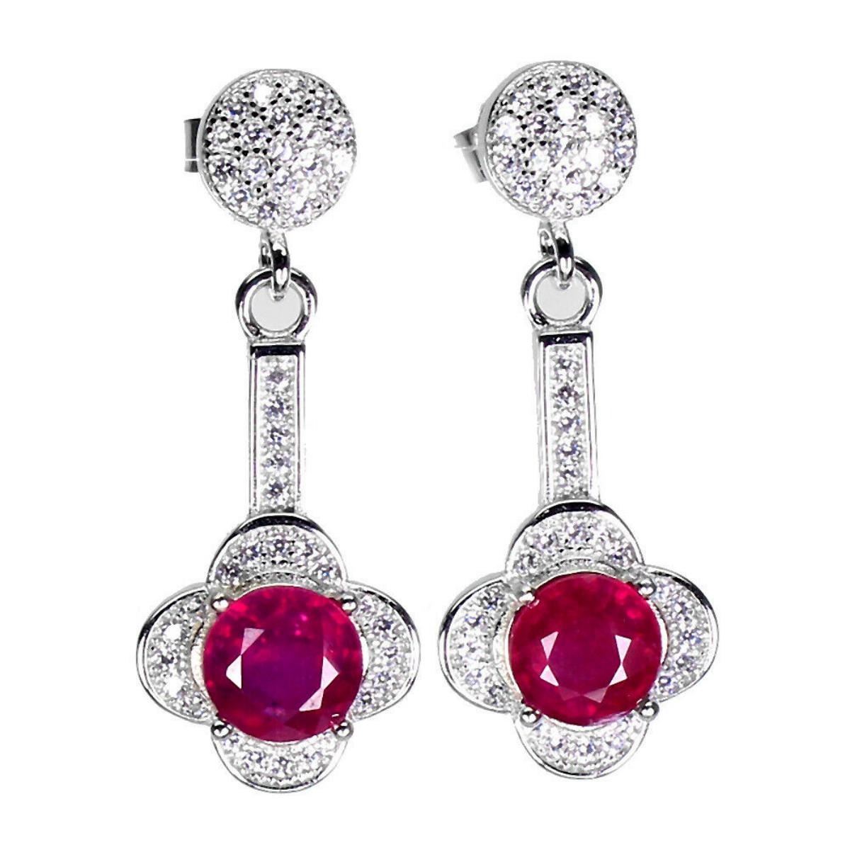 925 STERLING SILVER;PLATE-14K WHITE GOLD;MAIN STONE-RUBY;TOTAL WEIGHT-4.19 GRAM (TOTAL WEIGHT OF SILVER + STONE)DIMENSION-* STONE 6.0 MM. * CZ 1.0 MM. * FACE EARRINGS 27.0 X 11.0 MM.MAIN STONE SHAPE-ROUND CUT;MAIN STONE COLOR-BLOOD RED;TREATMENT-Yes;ORIGIN-MADAGASCAR;HARDNESS-9.0;