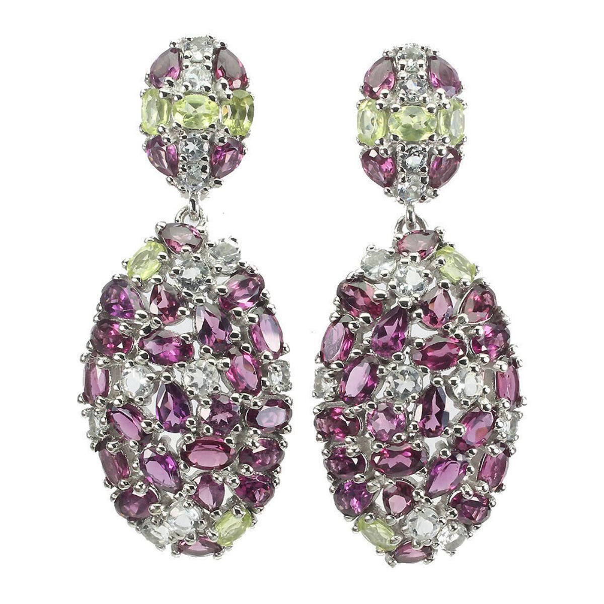 925 STERLING SILVER;PLATE-14K WHITE GOLD;MAIN STONE-RHODOLITE GARNET;OTHER GEMS-AQUAMARINE, PERIDOT;TOTAL WEIGHT-14.95 GRAM (TOTAL WEIGHT OF SILVER + STONE);DIMENSION-* STONE 2.5 TO 5.0 X 3.0 MM.* FACE EARRINGS 48.0 X 20.0 MM.;MAIN STONE SHAPE-PEAR; MAIN STONE COLOR-PINK RASPBERRY;CLARITY/GRADE-IF TO VVS;TREATMENT-UNHEATED;ORIGIN-AFRICA;HARDNESS-7.0 - 7.5;