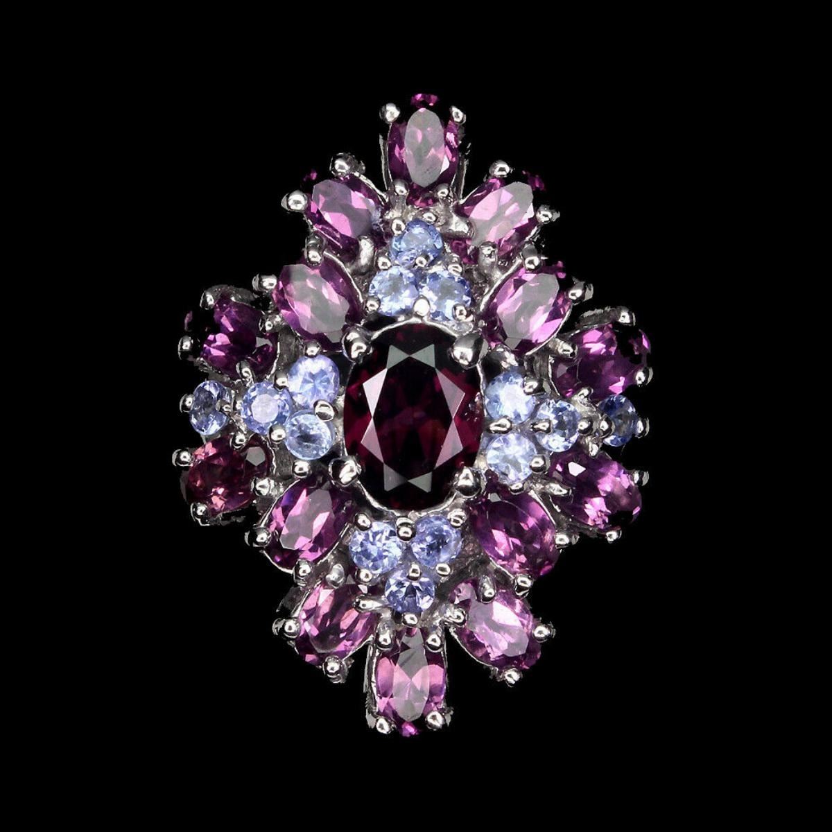 925 STERLING SILVER;PLATE14K WHITE GOLD;RING SIZE(resizeable)7;MAIN STONE-RHODOLITE GARNET;OTHER GEMS-TANZANITE;TOTAL WEIGHT-9.85 GRAM (TOTAL WEIGHT OF SILVER + STONE)DIMENSION* STONE 2.0 TO 8.0 X 6.0 MM. * RING SIZE 7.0 * FACE RING 28.0 X 21.0 MM.;MAIN STONE SHAPE-OVAL CUT;MAIN STONE COLOR-TOP RICH PINK RASPBERRY;CLARITY/GRADE-IF TO VVS;LUSTER-ELEGANT;TREATMENT-UNHEATED;ORIGIN-AFRICA;;HARDNESS-7.0 - 7.5;