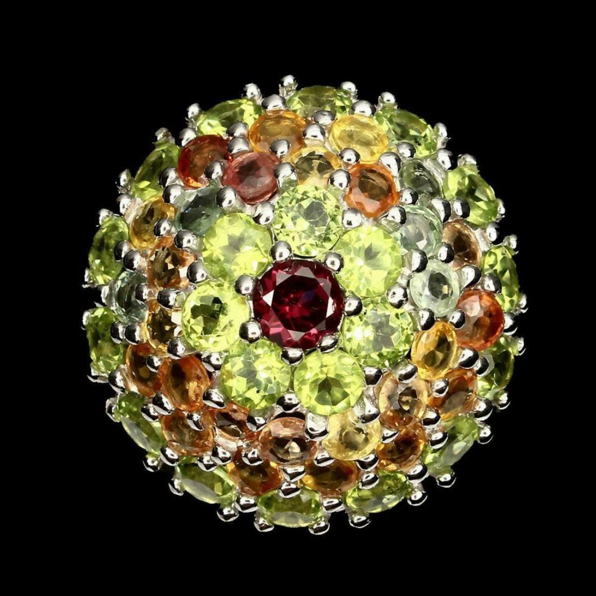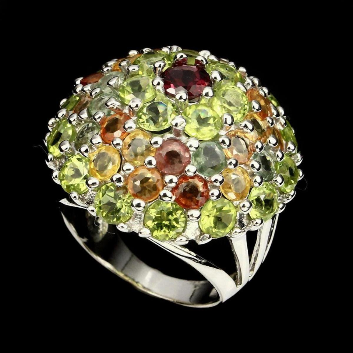 925 STERLING SILVER;PLATE14K WHITE GOLD;RING SIZE8.5(resizeable)MAIN STONERHODOLITE GARNET;OTHER GEMSPERIDOT,SAPPHIRE;TOTAL WEIGHT60.85 CT (TOTAL WEIGHT OF SILVER + STONE)DIMENSION* STONE 3.5 TO 5.0 MM. * RING SIZE 8.5 * FACE RING 25.0 X 24.0 MM.;MAIN STONE SHAPEROUND CUT;MAIN STONE COLORTOP RICH PINK RASPBERRY;CLARITY/GRADEIF TO VVS;LUSTERGORGEOUS;TREATMENTUNHEATED;ORIGINAFRICA;HARDNESS7.0 - 7.5;