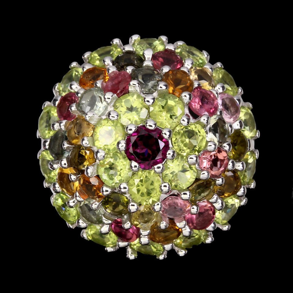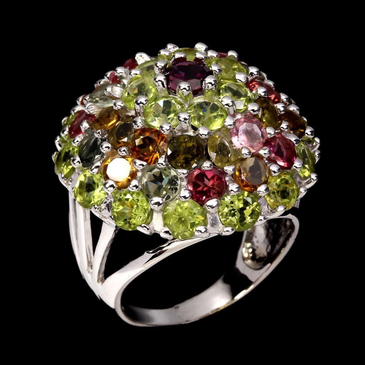 925 STERLING SILVER;PLATE14K WHITE GOLD;RING SIZE8.5 (resizeable)MAIN STONERHODOLITE GARNET;OTHER GEMSPERIDOT,TOURMALINE;TOTAL WEIGHT58.65 CT (TOTAL WEIGHT OF SILVER + STONE)DIMENSION* STONE 3.5 TO 5.0 MM. * RING SIZE 8.5 * FACE RING 26.0 MM.;MAIN STONE SHAPEROUND CUT;MAIN STONE COLORTOP RICH PINK RASPBERRY;CLARITY/GRADEIF TO VVSLUSTERGORGEOUSTREATMENTUNHEATEDORIGINAFRICAHARDNESS6.5 - 7.5