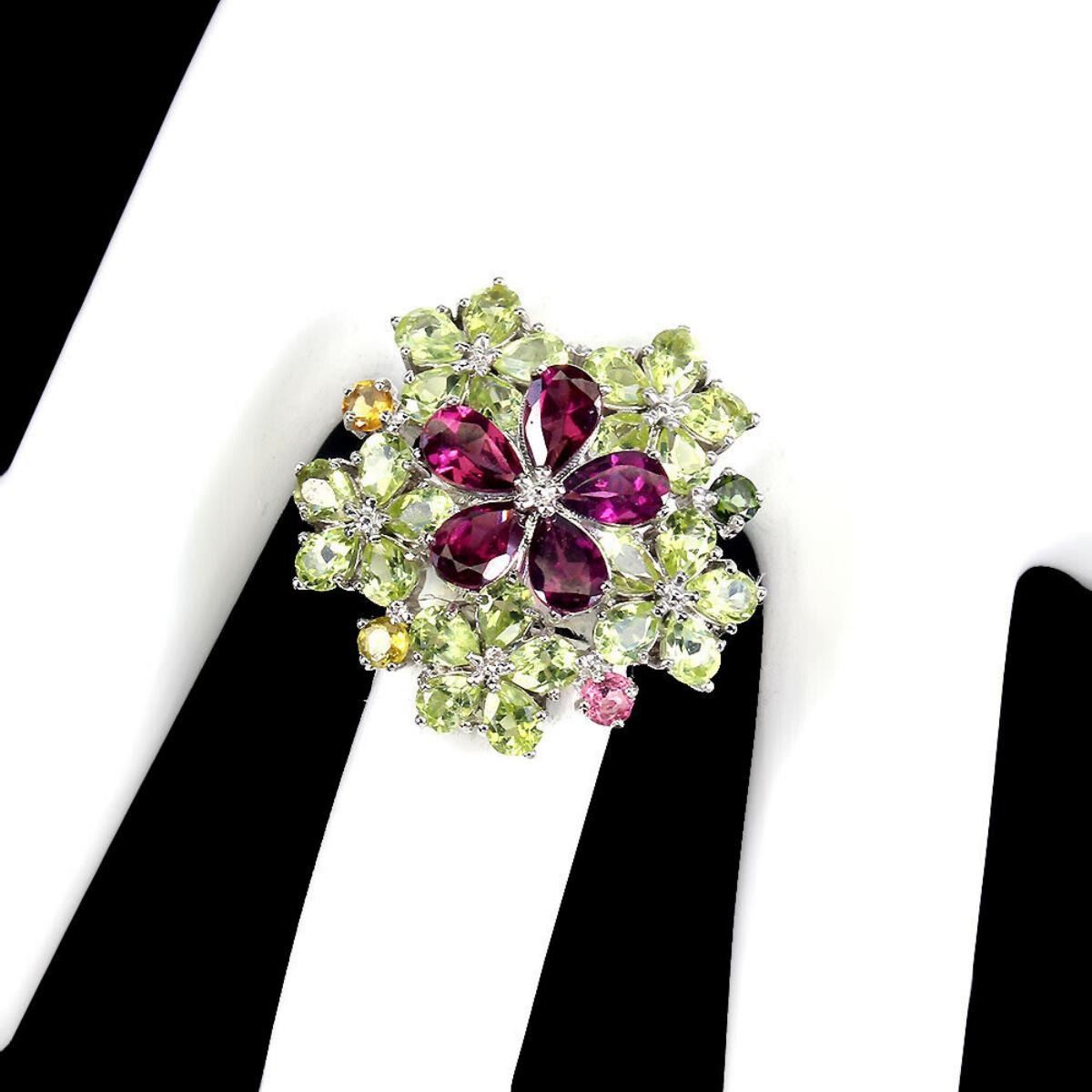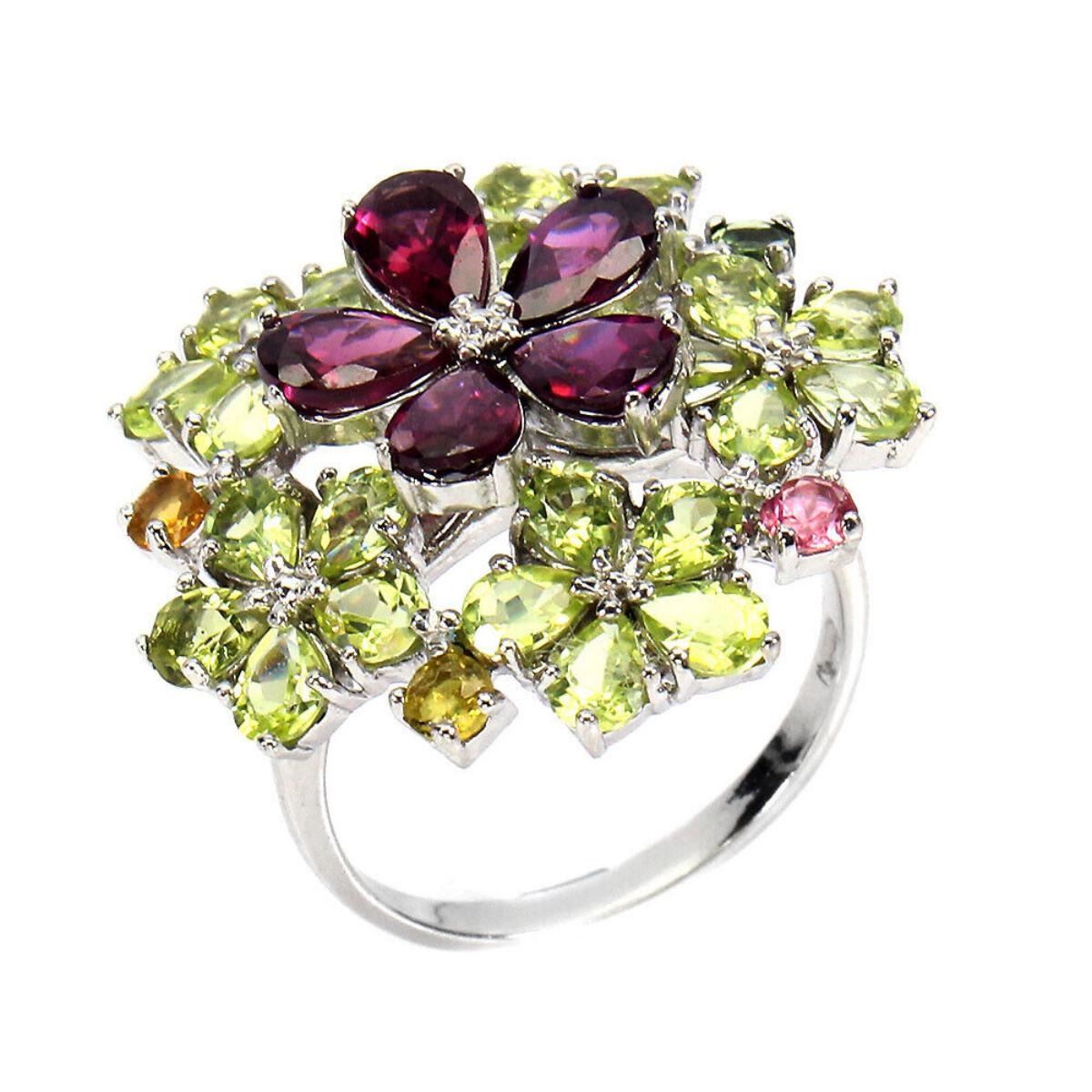 925 STERLING SILVER;PLATE-14K WHITE GOLD;RING SIZE/r-esizeable-)8;MAIN STONERHODOLITE GARNET;OTHER GEMS-PERIDOT, TOURMALINE;TOTAL WEIGHT-6.89 GRAM (TOTAL WEIGHT OF SILVER + STONE)DIMENSION-* STONE 2.5 TO 6.0 X 4.0 MM.;* RING SIZE- 8.0;* FACE RING- 27.0 X 25.0 MM.;;MAIN STONE COLOR-PINK RASPBERRY;CLARITY/GRADE-IF TO VVS;TREATMENT-UNHEATED;ORIGIN-AFRICA;HARDNESS-7.0 - 7.5;