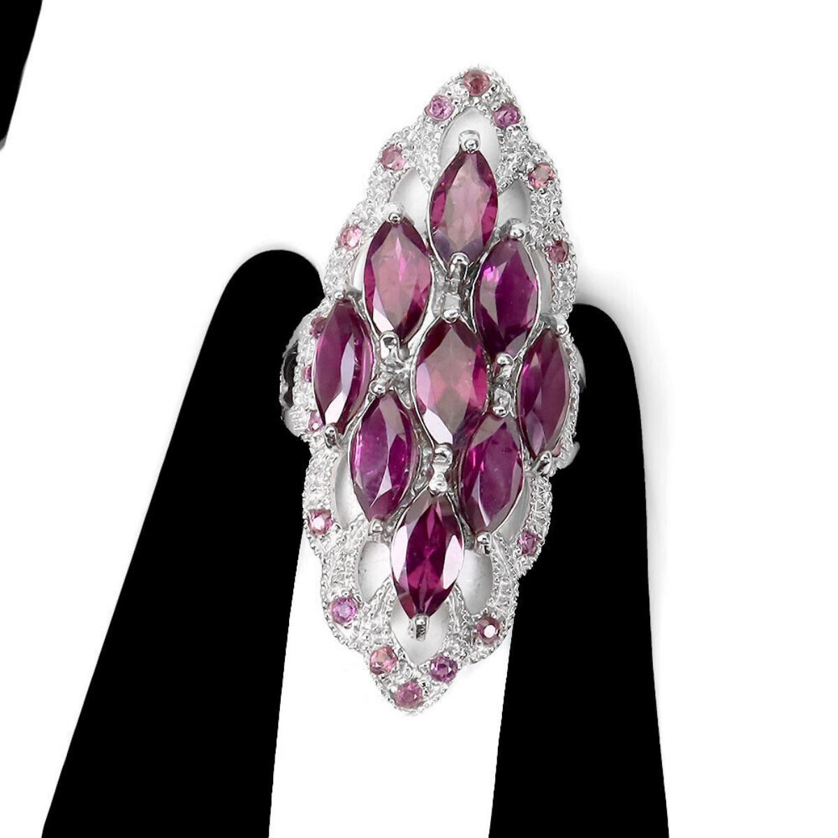 925 STERLING SILVER;PLATE-14K WHITE GOLD;RING SIZE-8(RESIZABLE);MAIN STONE-RHODOLITE GARNET;TOTAL WEIGHT-7.05 GRAM (TOTAL WEIGHT OF SILVER + STONE);DIMENSION-* STONE 1.5 TO 8.0 X 4.0 MM.* RING SIZE 8.0* FACE RING 39.0 X 18.0 MM.;MAIN STONE SHAPE-MARQUISE CUT;MAIN STONE COLOR-PINK RASPBERRY;CLARITY/GRADE-IF TO VVS;TREATMENT-UNHEATED;ORIGIN-AFRICA;HARDNESS-7.0 - 7.5;