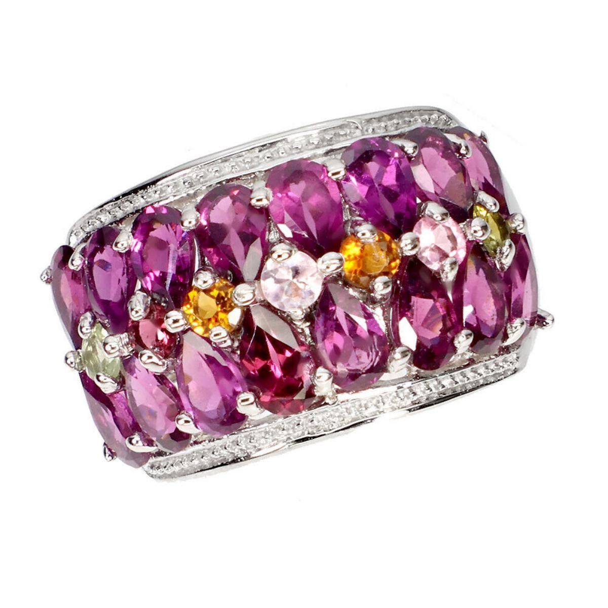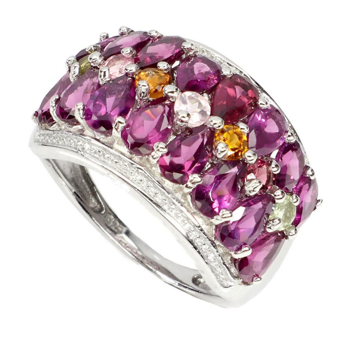 925 STERLING SILVER;PLATE-14K WHITE GOLD;RING SIZE/resizable-7;MAIN STONE-RHODOLITE GARNET;OTHER GEMS-TOURMALINE;TOTAL WEIGHT-4.58 GRAM (TOTAL WEIGHT OF SILVER + STONE)DIMENSION-* STONE 2.5 TO 5.0 X 3.0 MM.;* RING SIZE- 7.0;* FACE RING- 21.0 X 13.0 MM.;MAIN STONE SHAPE-PEAR CUT;MAIN STONE COLOR- PINK RASPBERRY;CLARITY/GRADE-IF TO VVS;TREATMENT--UNHEATED;ORIGIN-AFRICA;