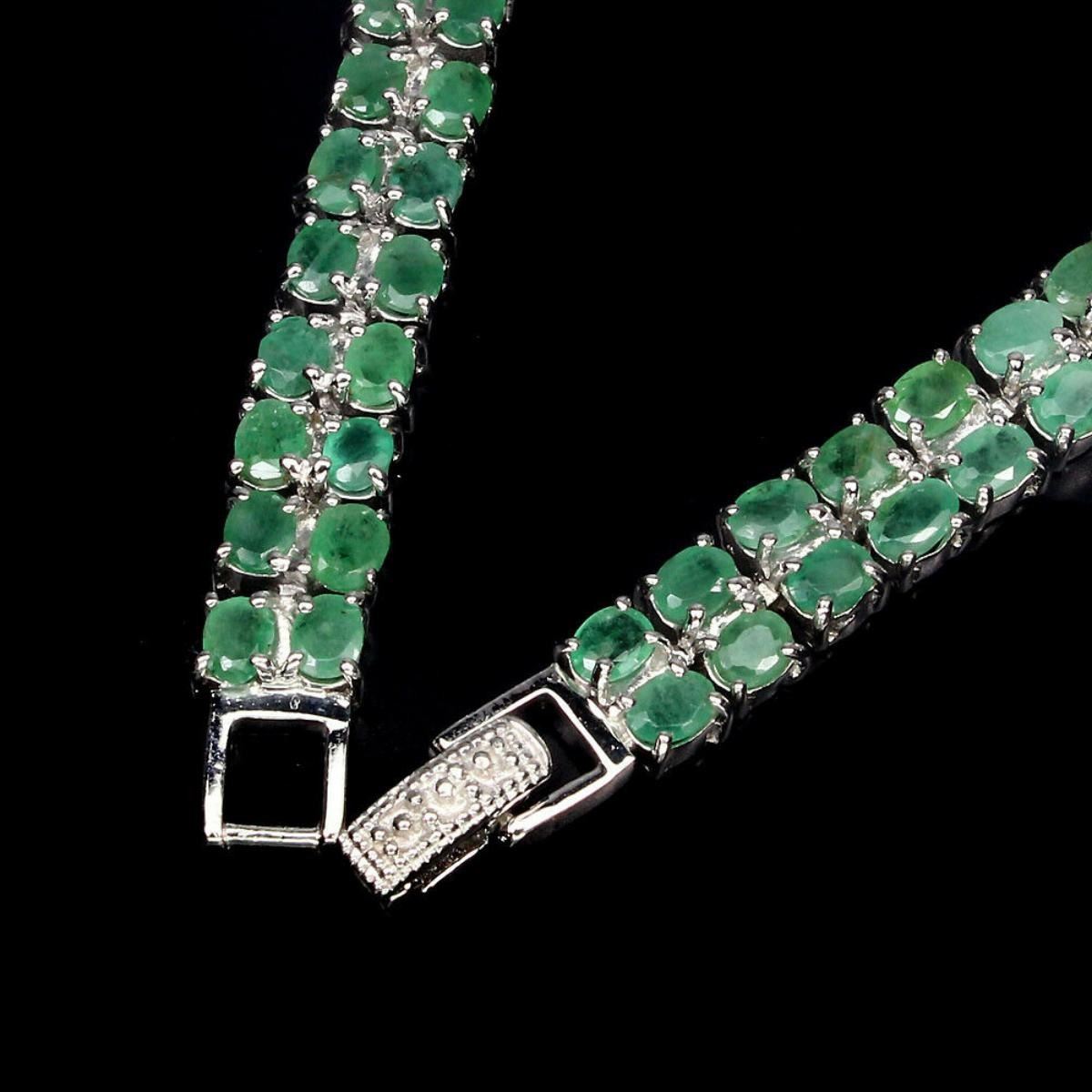 925 STERLING SILVER;PLATE....14K WHITE GOLD;LENGTH (INCHES)8;MAIN STONE...EMERALD;OTHER GEMSTOTAL WEIGHT....98.27 CT (TOTAL WEIGHT OF SILVER + STONE)DIMENSION* STONE 4.0 X 3.0 MM. * FACE BRACELET 180.0 X 7.0 MM.;MAIN STONE SHAPEOVAL CUT;MAIN STONE COLORTOP RICH GREEN;TREATMENT-UNHEATED;ORIGIN-BRAZIL;HARDNESS7.5 - 8.0;