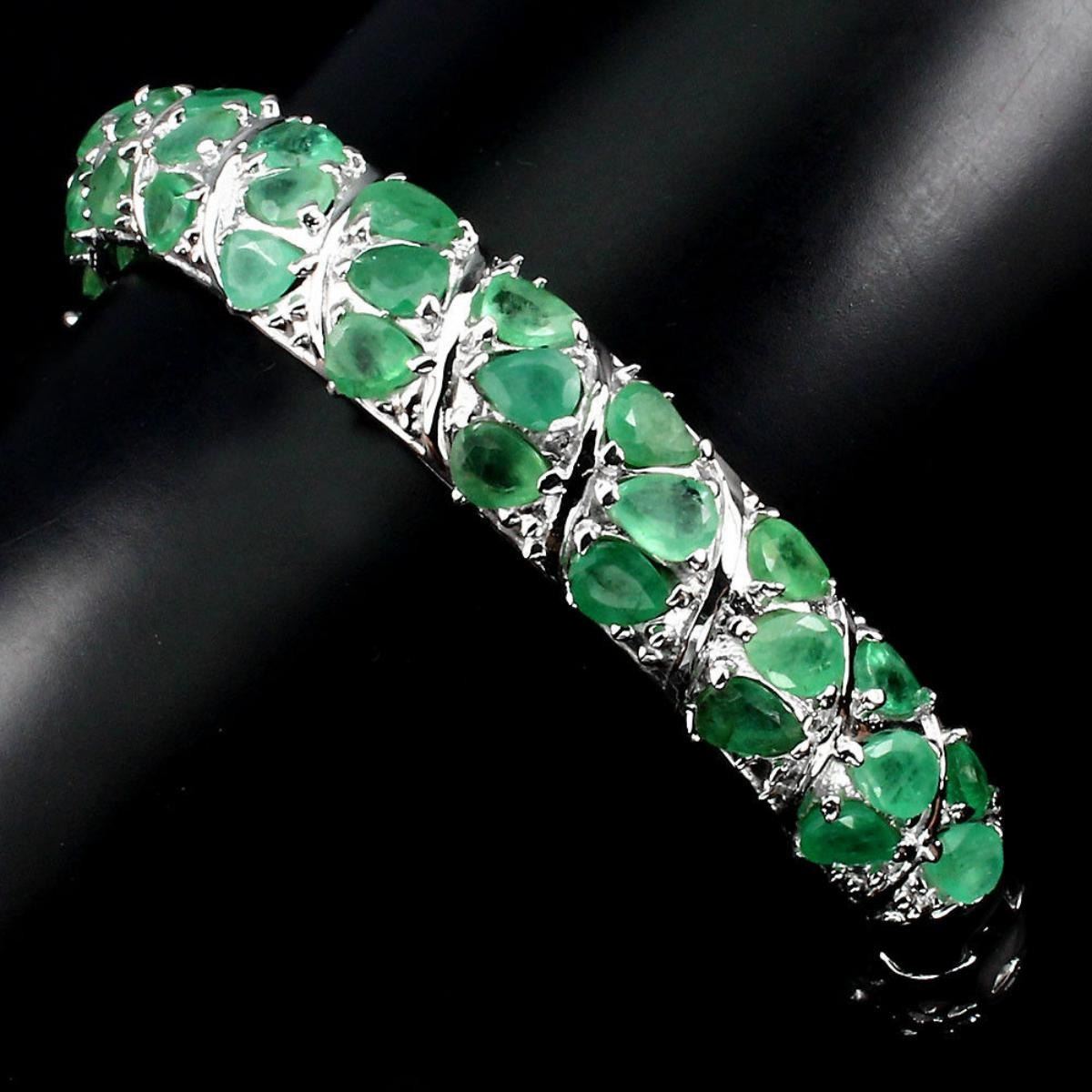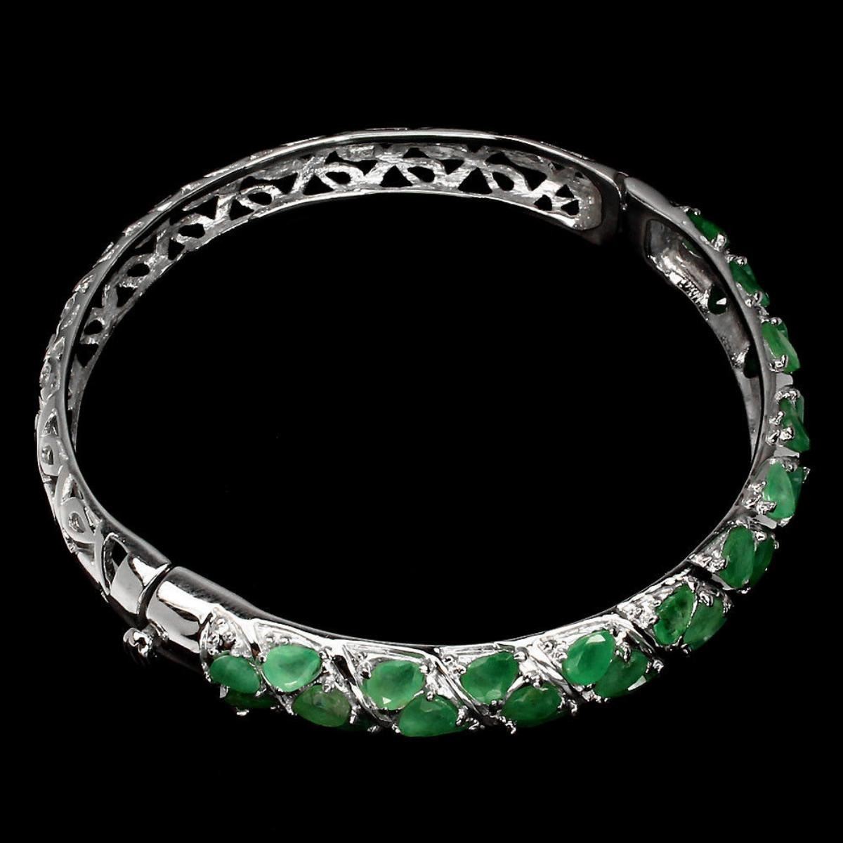925 STERLING SILVER; 14 k white gold plated;LENGTH (INCHES)2.2MAIN STONEEMERALDOTHER GEMSTOTAL WEIGHT124.09 CT (TOTAL WEIGHT OF SILVER + STONE)DIMENSION* STONE 5.0 X 3.0 MM. * DIAMETER 2.2 INCHES. * FACE BANGLE 67.0 X 10.0 MM.MAIN STONE SHAPEPEAR CUTMAIN STONE COLORTOP RICH GREENCLARITY/GRADETRANSPARENTLUSTERDELIGHTFULTREATMENTUNHEATEDORIGINBRAZILHARDNESS7.5 - 8.0